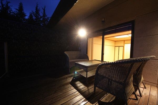 ■ 季節を感じるテラスが付いた七つのお部屋からは、山並から出る月明かりや満天の星を眺めることができます。当館の標準的なお部屋となります