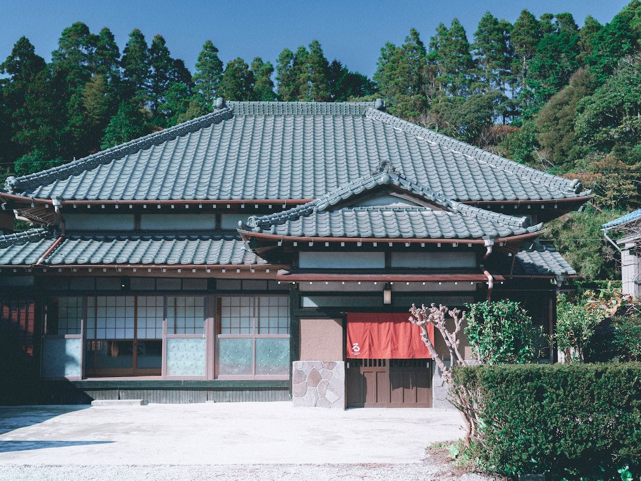 【海山里の恵みを堪能する土間のある宿】モダンな土間と広い裏庭が魅力のおおらかな和の空間。夕食後の焚き火やテントサウナなど、楽しみ方が充実した宿はグループでのお泊まりにも最適です。
