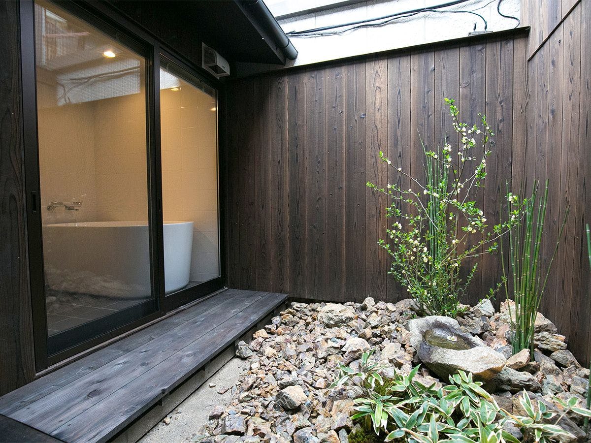 世界遺産 二条城のわずか200mに位置する一棟貸切の京町家です。当時のままの古材、土壁を生かしたり、スタイリッシュで快適にリノベーションしたりと「新」と「古」2つの顔を併せ持ちます。