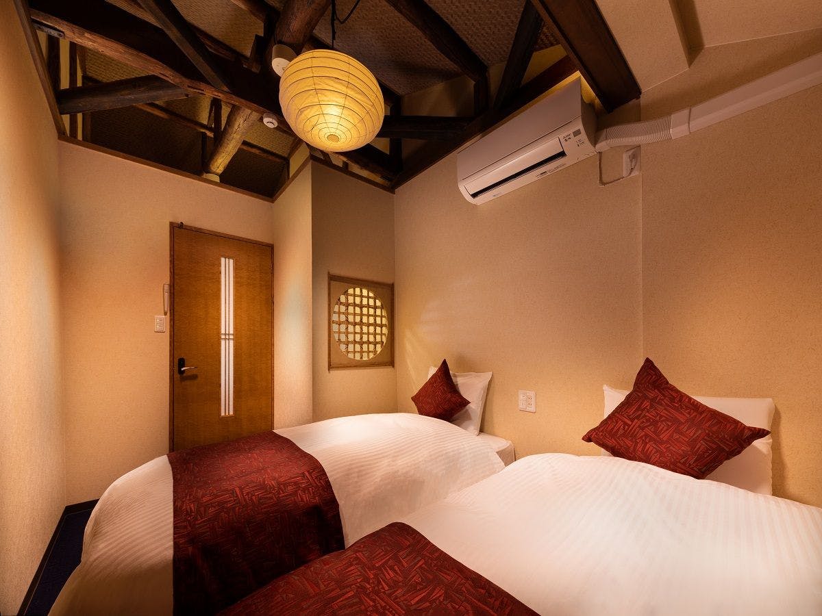 新選組ゆかりの寺「壬生寺」近くの歴史由緒ある場所に佇む。高級寝具シモンズ社製のマットレス、和布団には高反発マットレスで名高いエアウィーヴを採用し快適な睡眠をお約束。