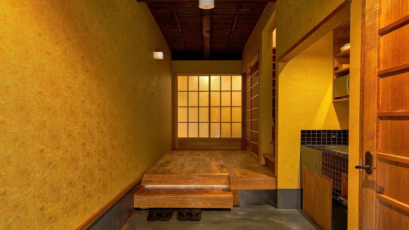 南北の大通り「堀川通」から少し入った閑静な住宅街の中に佇む京町家前庭を抜けると風情を感じる町家があなたを出迎え。玄関を入れば町家をイメージする土間がさらに気分を高めてくれる。