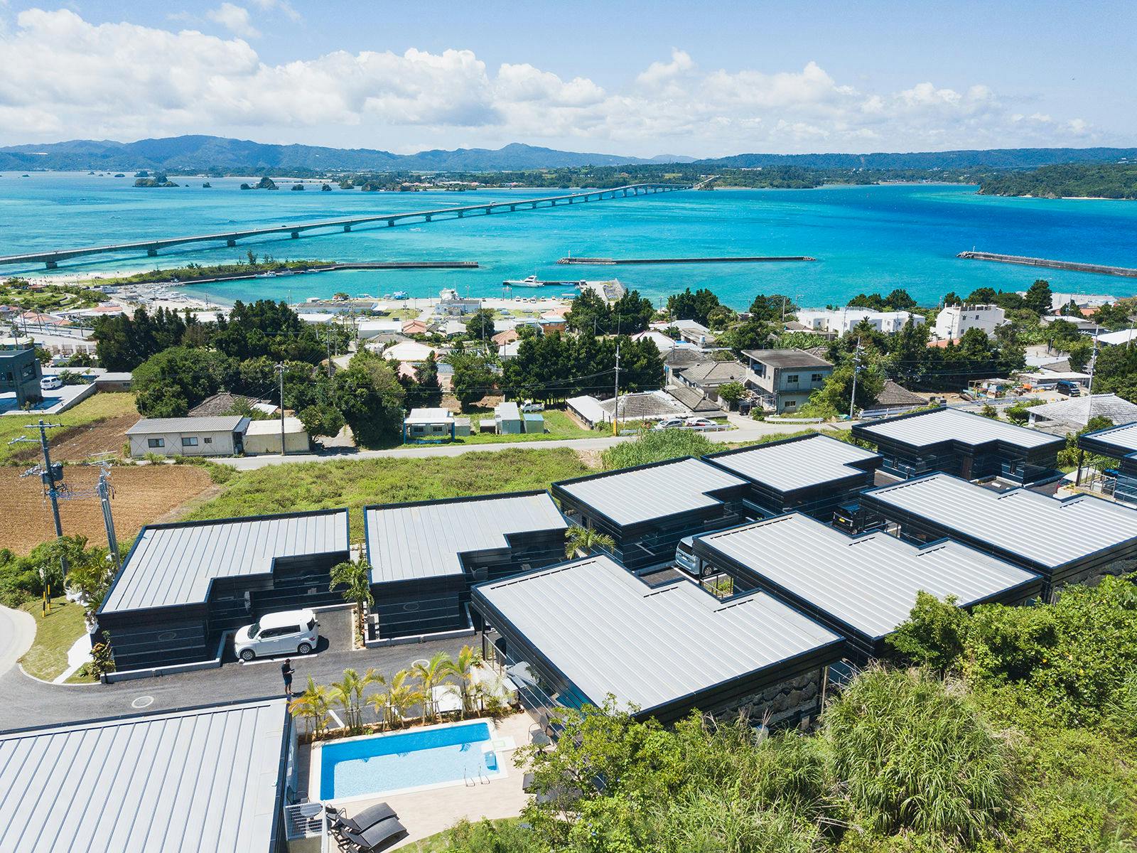 古宇利大橋と海を一望できる高台に建つ、全9棟独立型のヴィラタイプホテル。朝食・夕食ともにお部屋で提供しているので密を気にせずに安心してお楽しみいただけます。2019年4月グランドオープン