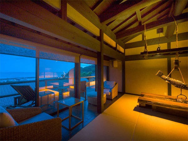 全10室、温泉の客室専用露天風呂から海と夕陽を一望できる「美と健康」をテーマにした小さなリゾートホテル。滞在中の全てのサービスを通し、お客様に「綺麗」をお届けします。