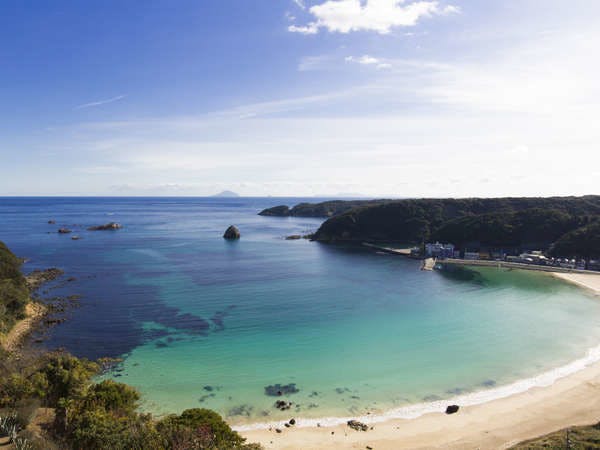 白砂ビーチの目の前に佇む海一望の湯宿。全ての客室、全てのお風呂から紺碧の海を望めます。料理は海鮮を炭火で炙る炭火焼会席膳と、伝統の磯会席膳の2種類。伊豆の山海の幸を絶景・温泉と併せてご堪能下さい。