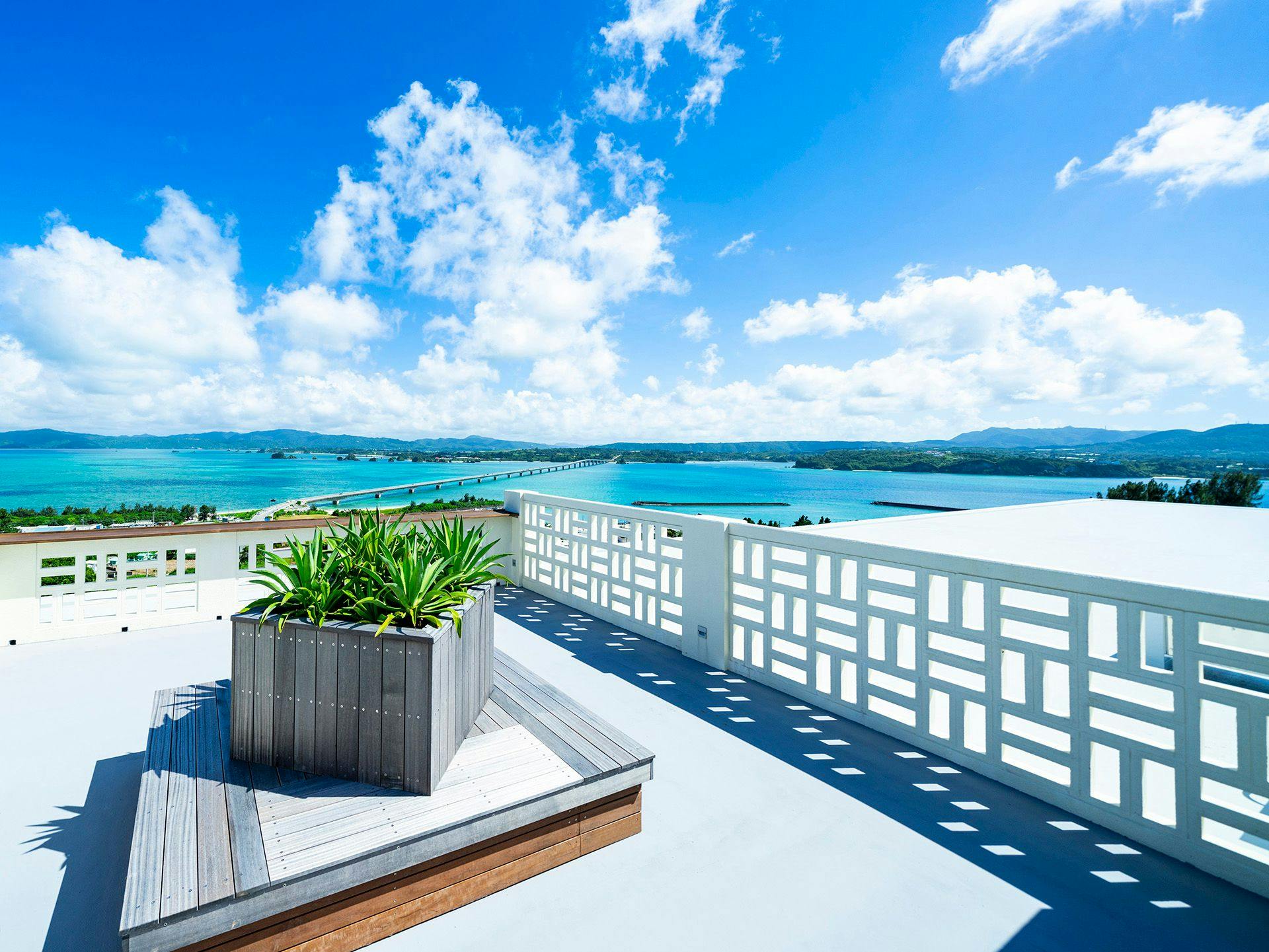 古宇利大橋とマリンブルーを一望できる全38室オールスイートルーム。屋外プールではデッキチェアで穏やかな時の流れに身を任せ、屋上テラスでは幻想的な夕日や満天の星空を眺め特別な時を過ごせます。