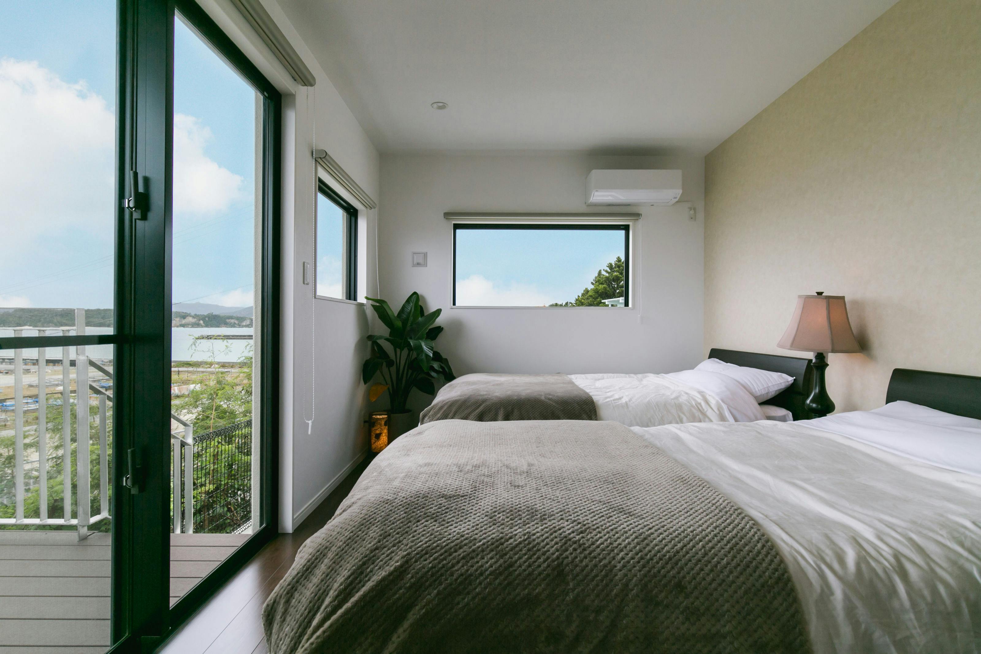 お部屋からエメラルドグリーンの古宇利の海を贅沢に一望できる、ハイクラスなプライベートプール付きヴィラ。3LDK広々新築一棟貸切、最大8名様まで宿泊可能。