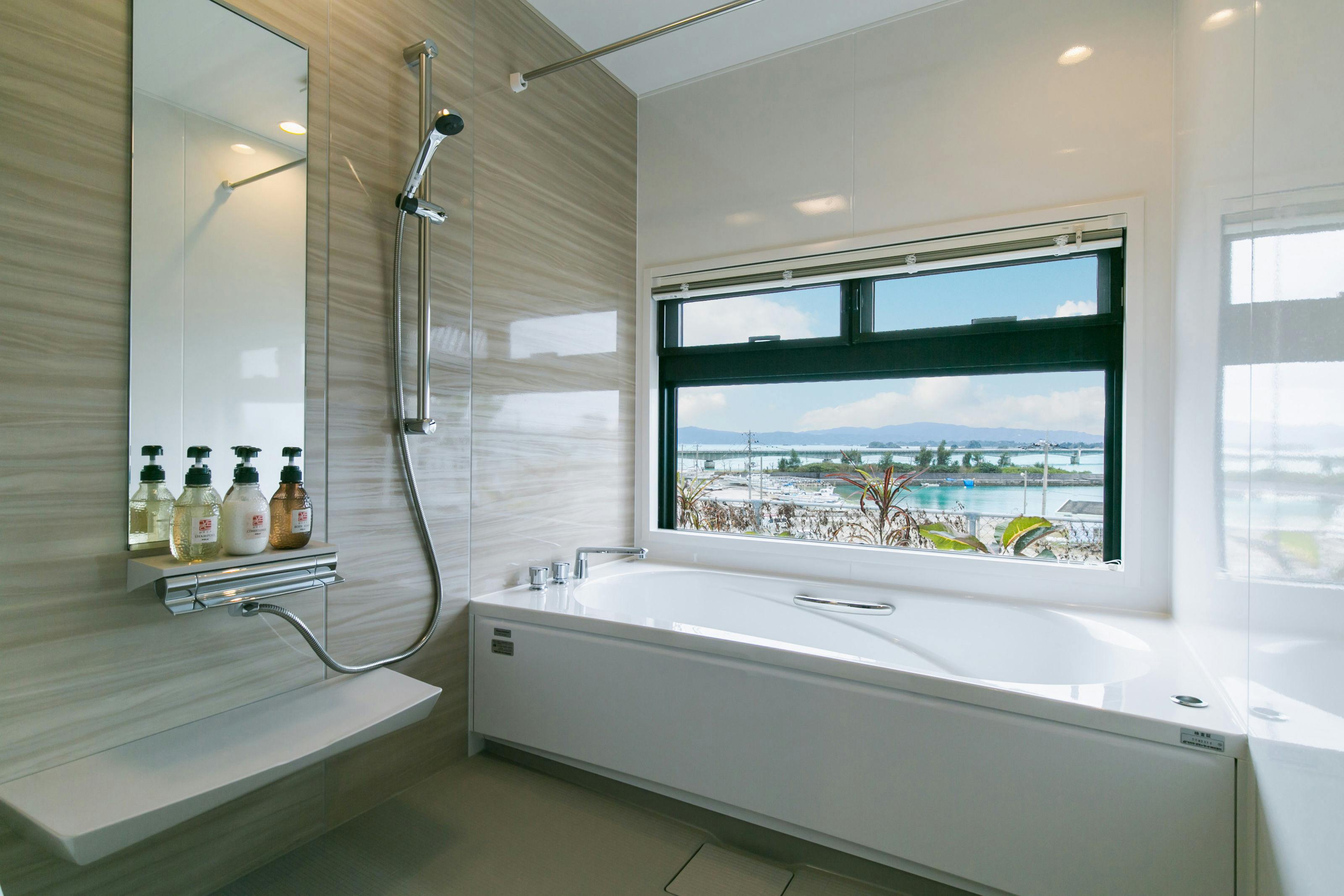 オーシャンビューの開放的な一棟貸しヴィラです。ウッドデッキにはジャグジーがあり、青い海や星空を眺めることができます。古宇利ビーチまで徒歩2分。キッチン、ランドリー付きです。