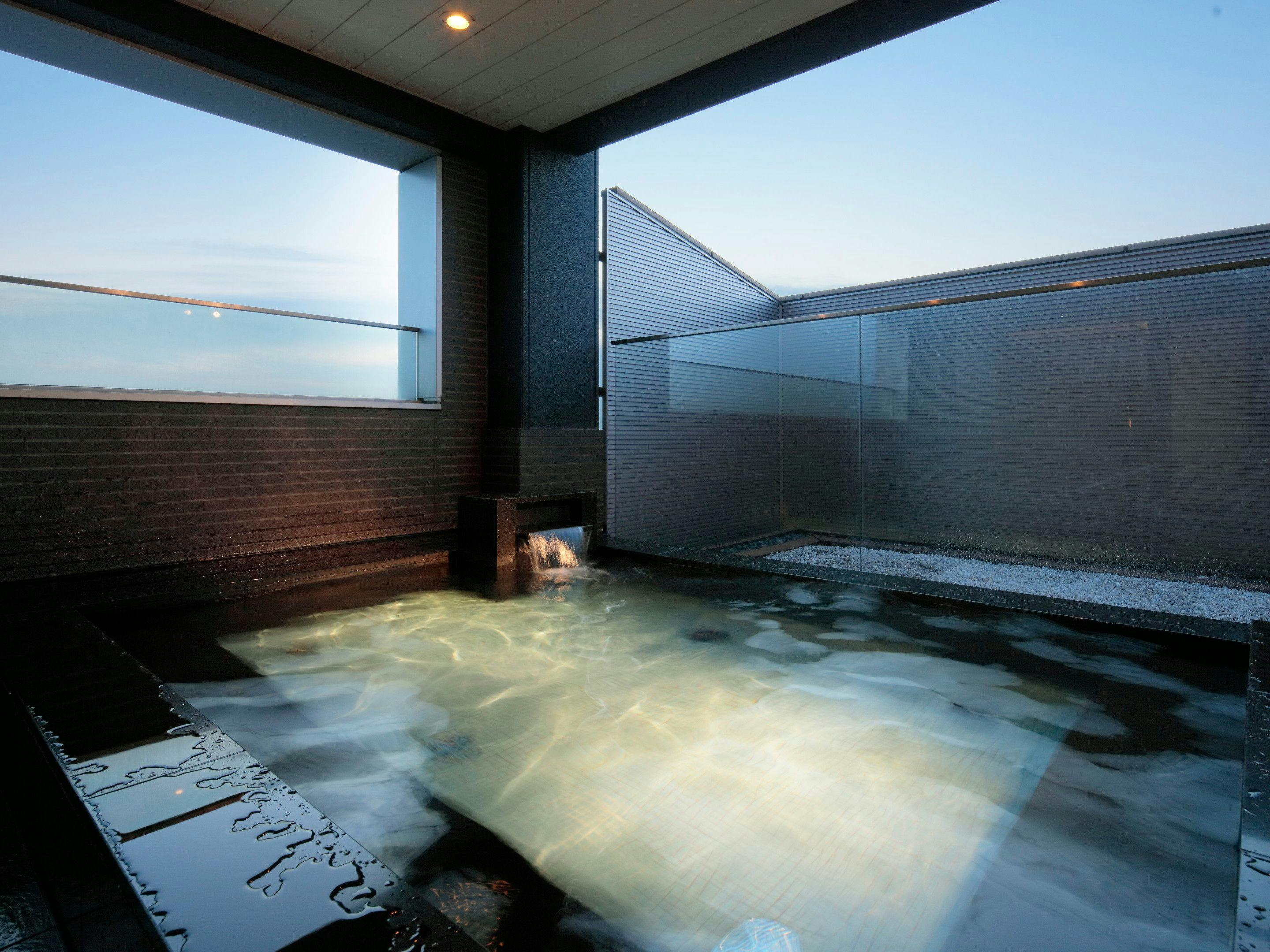 ご宿泊のお客様は最上階の展望露天風呂ご利用無料!全室シモンズベッドで快適な眠りを追求。