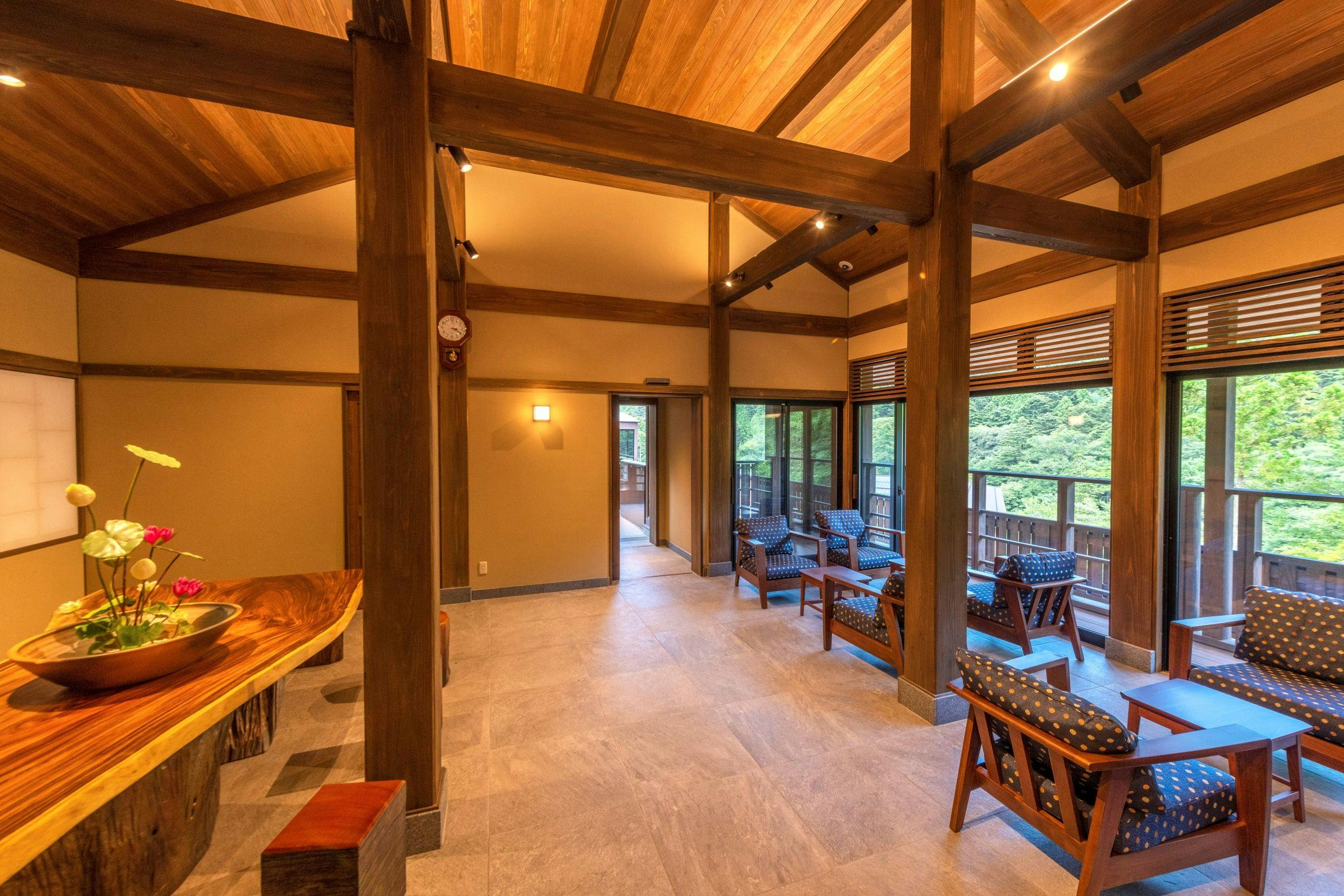 2021年4月増築を行い大幅リニューアル!ロビーにはアルコールを含む無料ドリンクコーナー(時間制限あり)もあり好評です。暖炉の火を囲みテラスからの景色を楽しむ・・・極上のご褒美時間がここにあります。