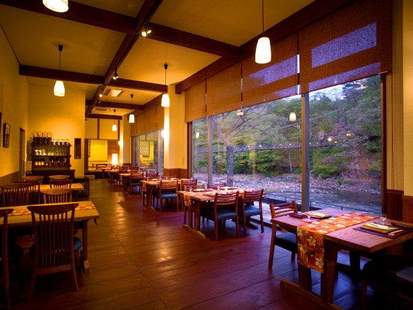 全11部屋が箒川の渓谷沿いに面しており、四季折々の景観が望めます。温泉は全ての湯口から加温・加水なしの源泉100%掛け流しの贅沢なお湯が注がれております。料理長自慢の月替わりの懐石料理も評判です。
