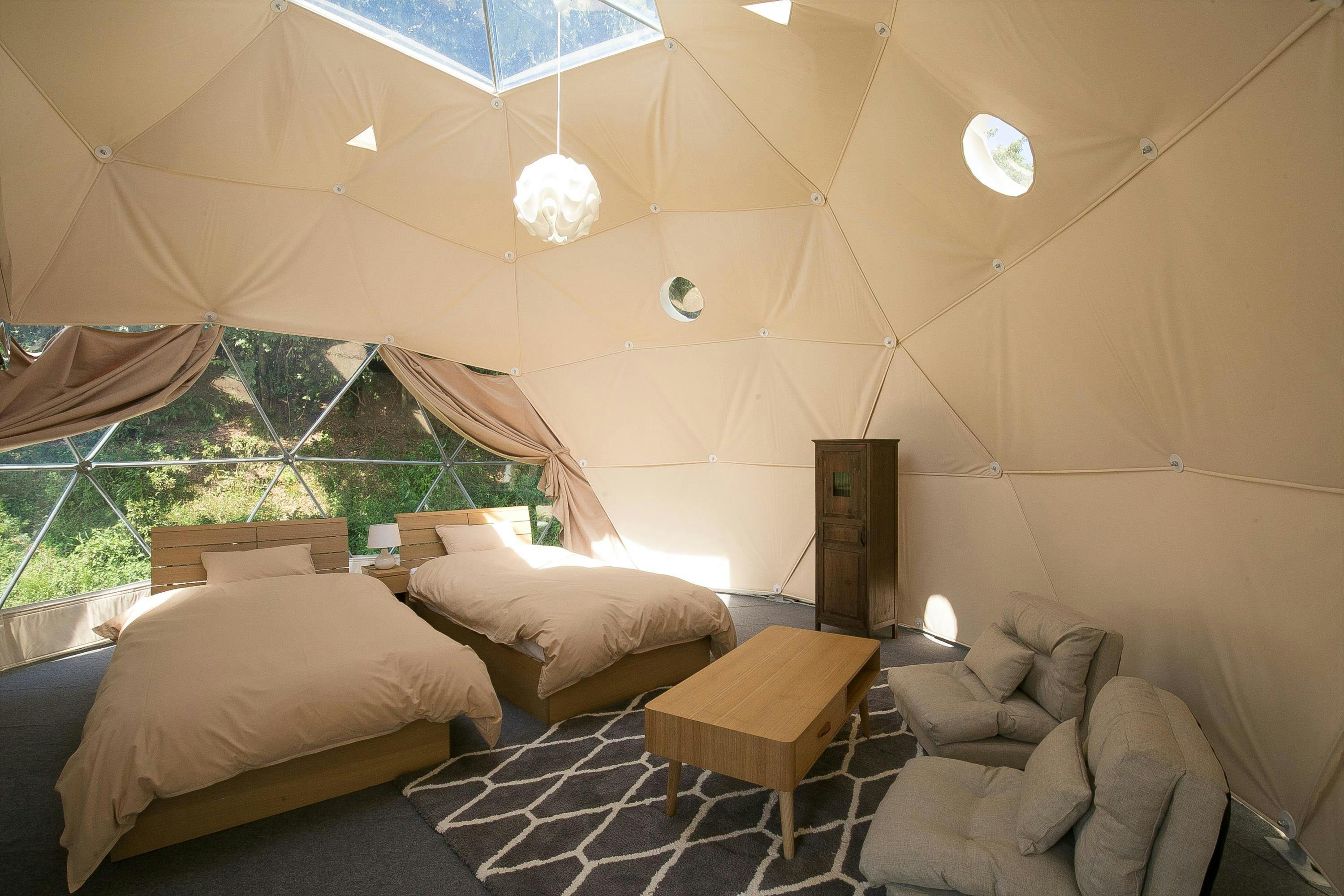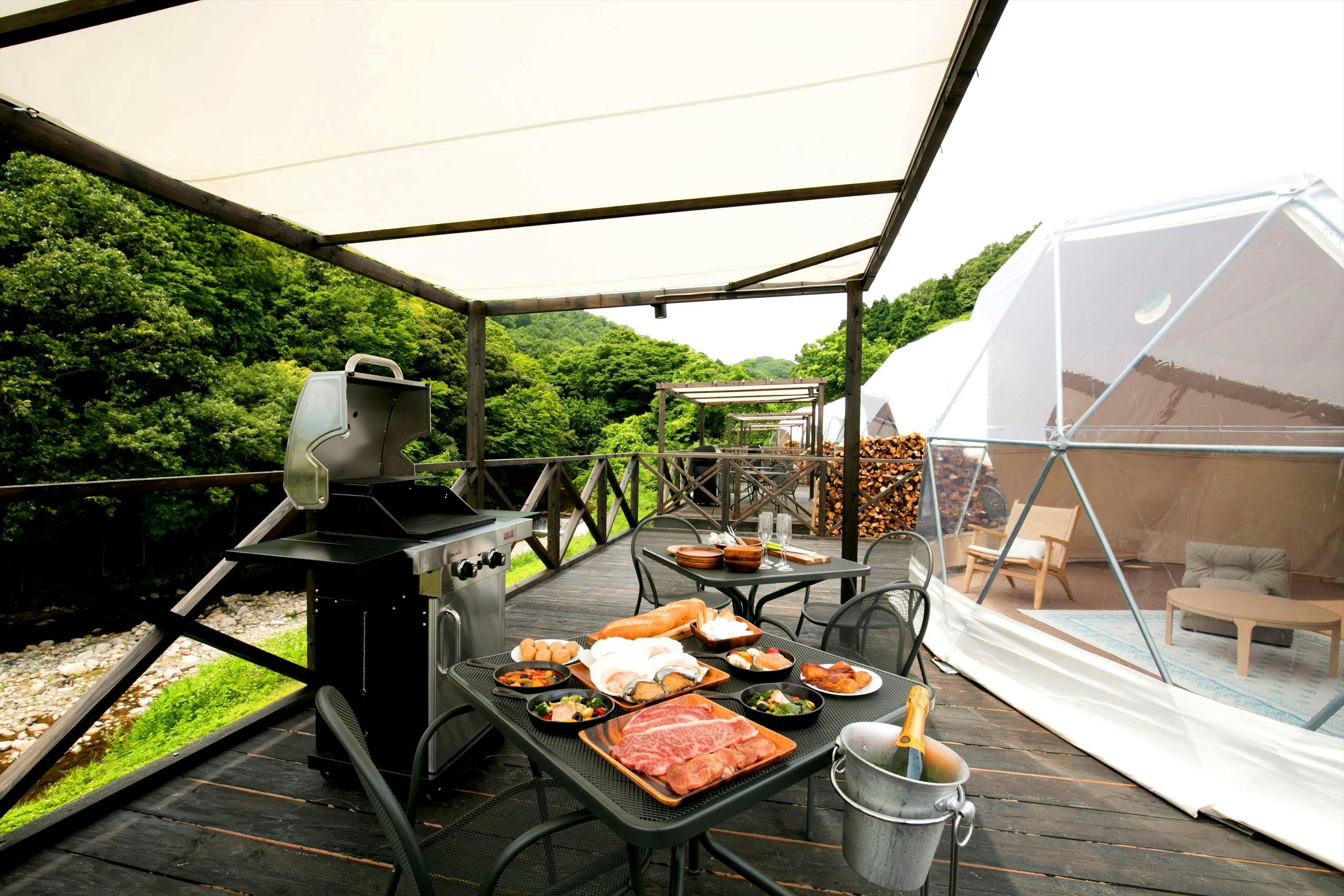 京都丹後エリアに誕生した、体験型グランピングリゾートです。開放感のある快適なドーム型テントで非日常体験を。世屋川のせせらぎを感じ、宮津湾を眺めながらBBQやキャンプファイヤーをお楽しみいただけます。