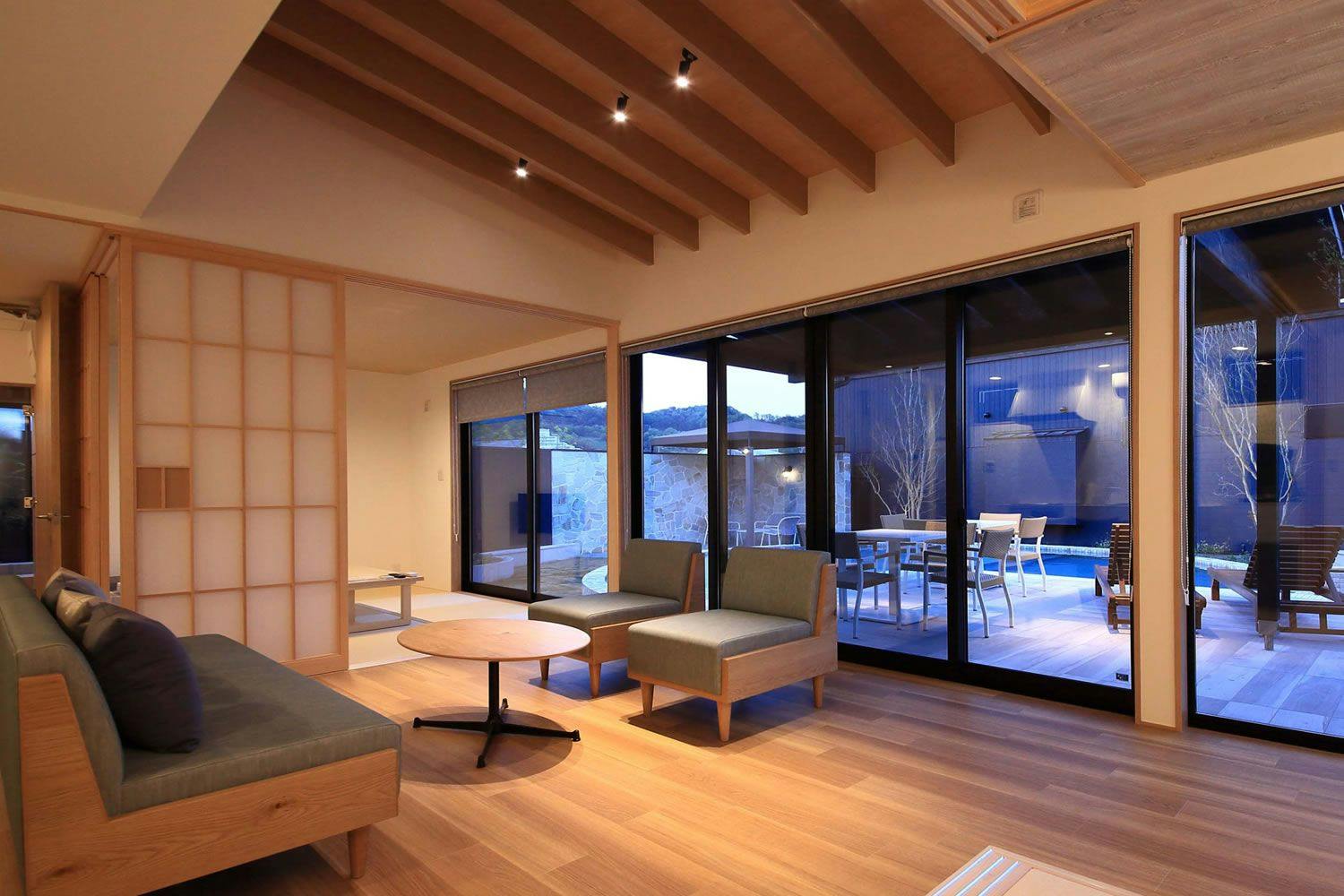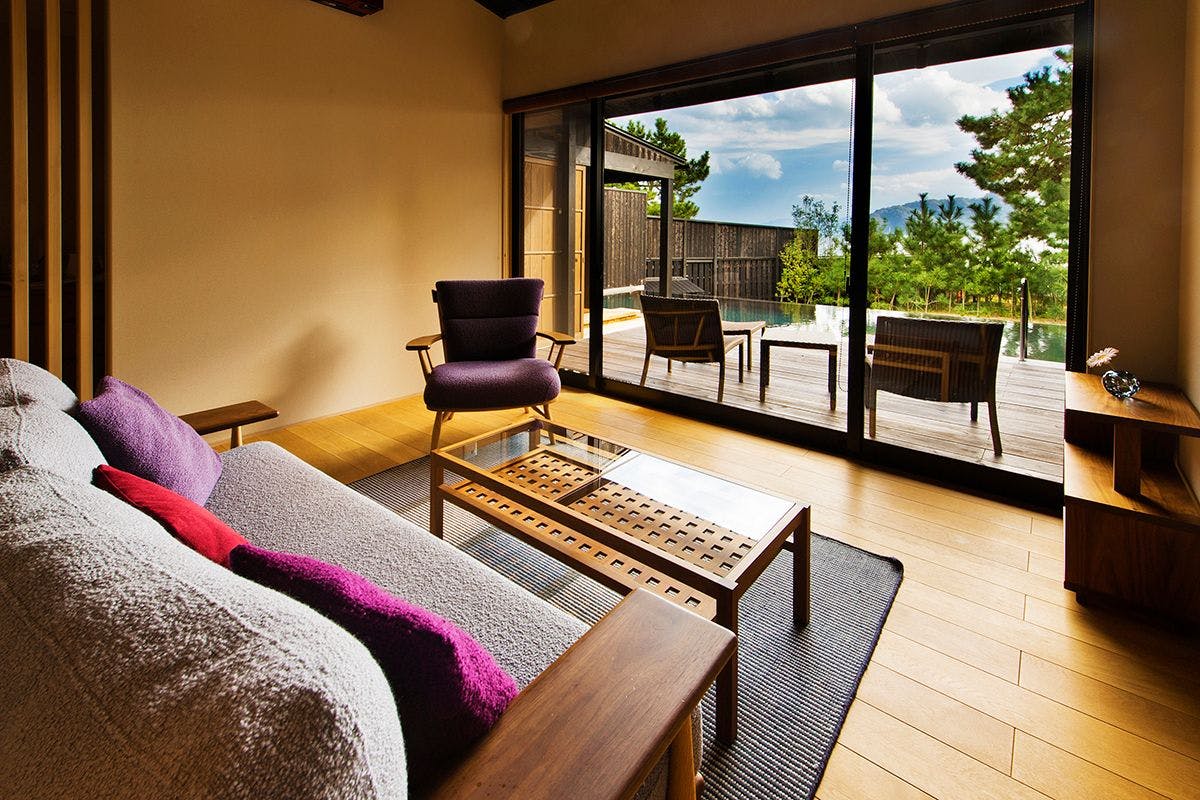 各ヴィラにはプライベートプール、天然温泉を備えたラグジュアリーな設え。最も広い敷地面積のヴィラは1,600平米以上。国内屈指のスケール空間で過ごす時間はここでしか味わえないくつろぎを与えてくれます。
