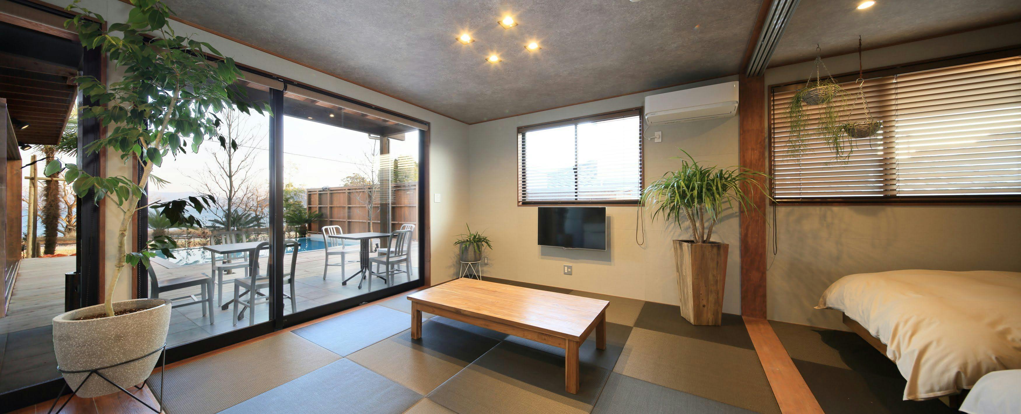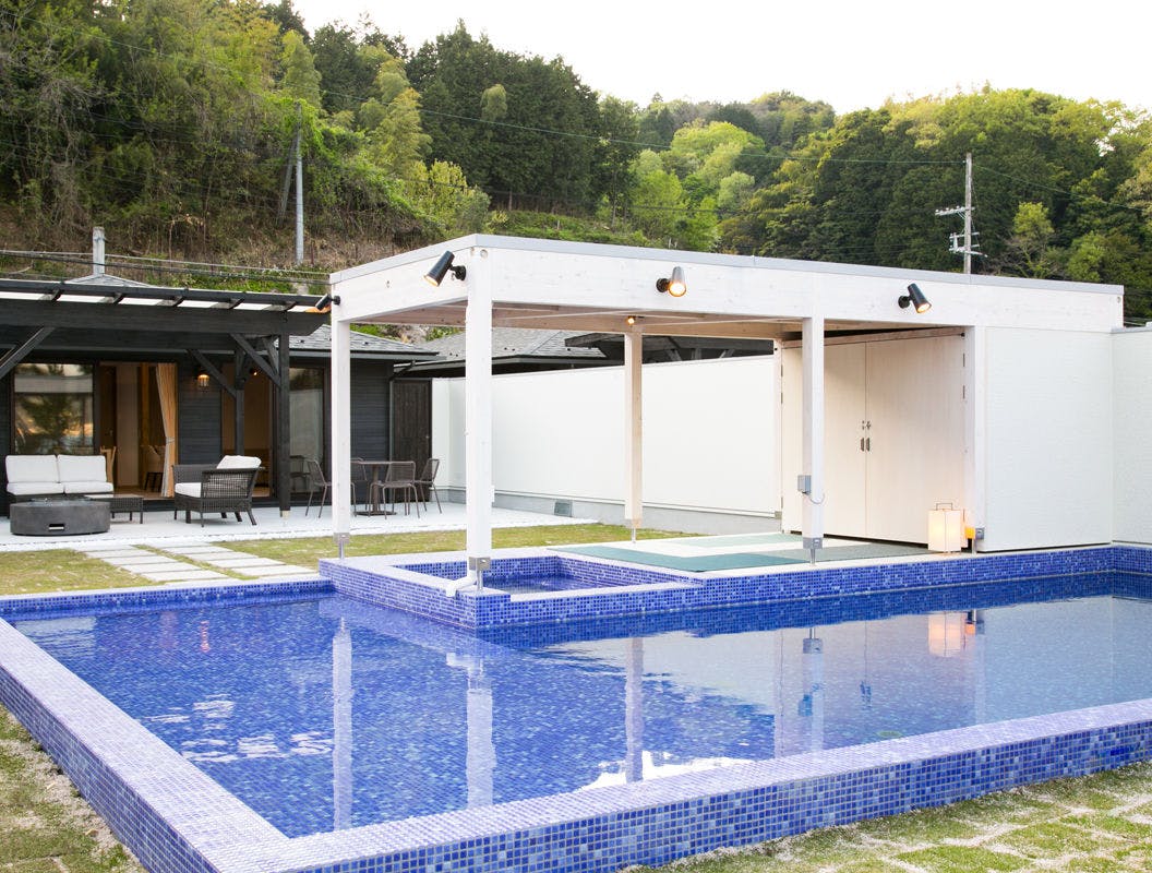 【2017年5月OPEN】全棟に上質なプライベートプール・天然温泉・グランピング施設を備えた豪華な一棟貸切ヴィラです。天橋立を望む海まで徒歩1分。ペット同伴可能な棟もございます。