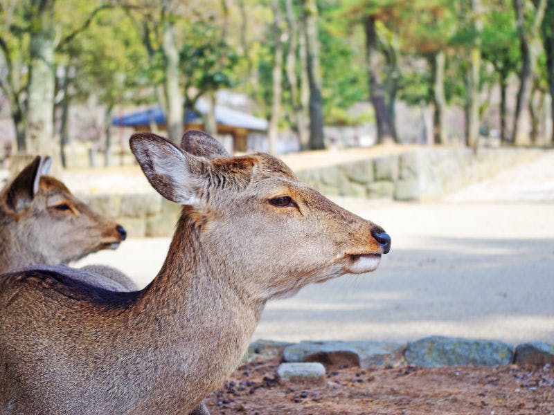 名勝奈良公園内に位置し、あたりの景観にしっくり溶け込む社寺風建築の落ち着いた佇まいです。世界遺産の東大寺・興福寺・春日大社等への観光にも近くて便利です。