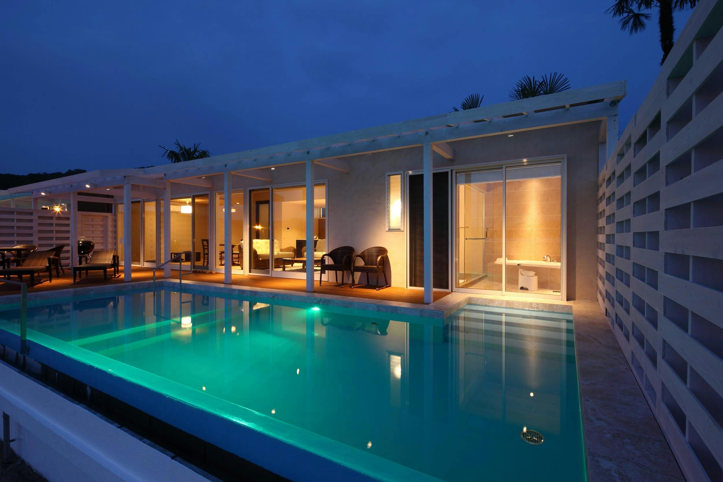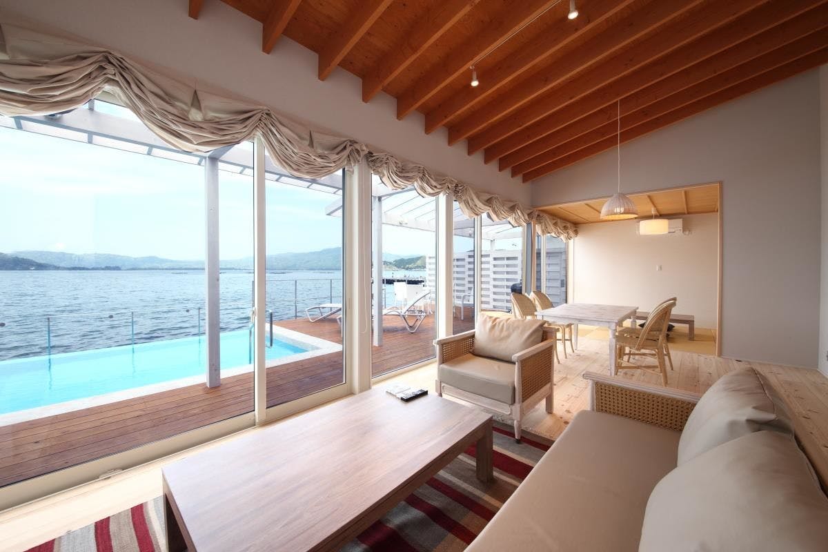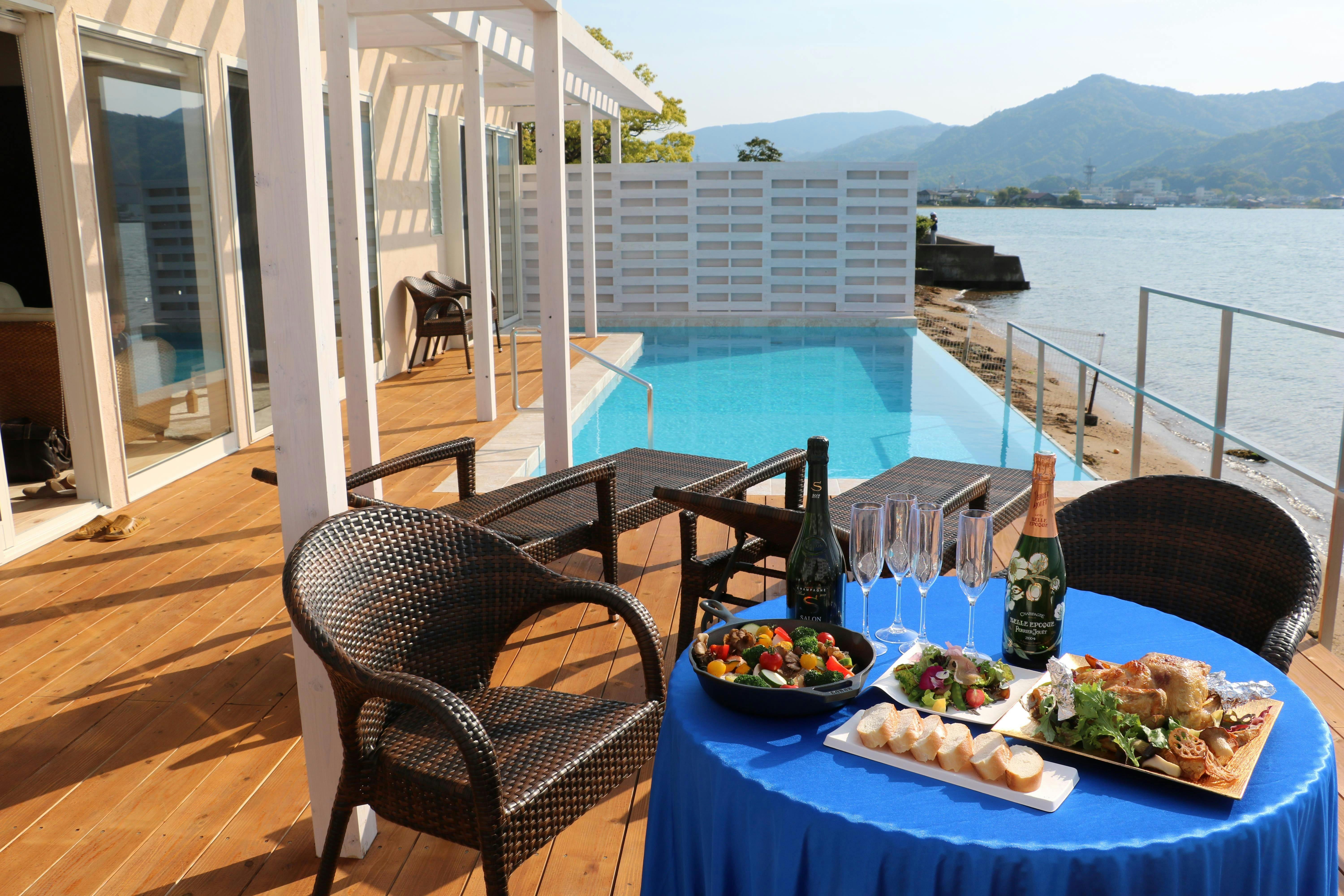 【2016年6月オープン】宮津湾と天橋立が一望できる絶景の戸建て別荘の一棟貸しです。宮津湾と融合したインフィニティプール、BBQができるテラスと開放的な間取りのヴィラです。