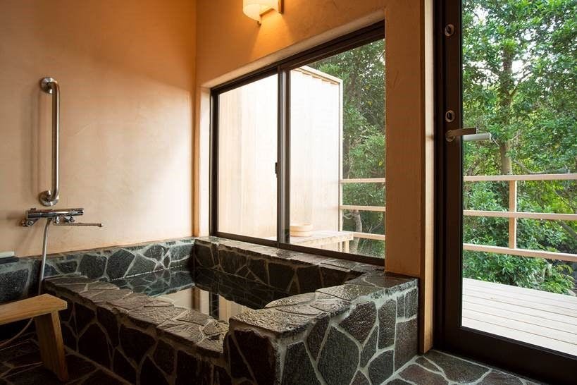 世界自然遺産登録地域にあるモッチョム岳や太平洋から東シナ海へとつながる雄大な海原が目の前に広がる大パノラマと美容液に浸ったような贅沢なとろみ感の天然温泉で心も体も癒されます。