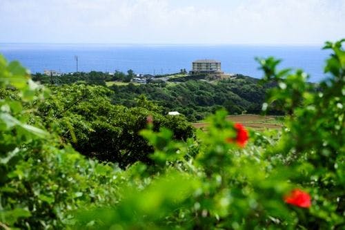 屋久島の海岸線を望む小高い丘に建つホテル。フェリーが到着する宮之浦港から徒歩5分、スーパーやレストランにも徒歩圏内という好立地も魅力です。登山用品のレンタルもあり、トレッキングの拠点としてもおすすめ。
