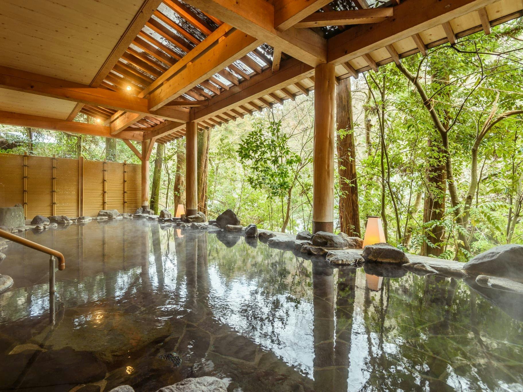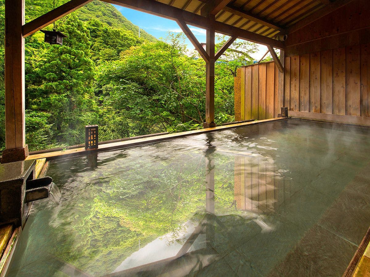 加賀の名湯、山中温泉で創業800年を誇る老舗旅館。名勝・鶴仙渓の中心に建ち、渓流のすぐそばで湯あみする心地良さはまさに別世界。春夏は美しい緑、秋は紅葉、冬は雪景色をお部屋から楽しみながらのんびりと。