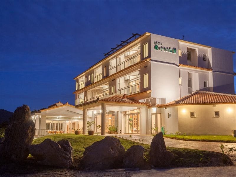 海山の自然豊かな沖縄北西部もとぶ町の山頂域に立地する「星のテラスもとぶ山里」。全室ビューバスタイプのホットジャグジーを完備。全10室の隠れ家的なリゾートホテルで癒しの滞在をお愉しみください。