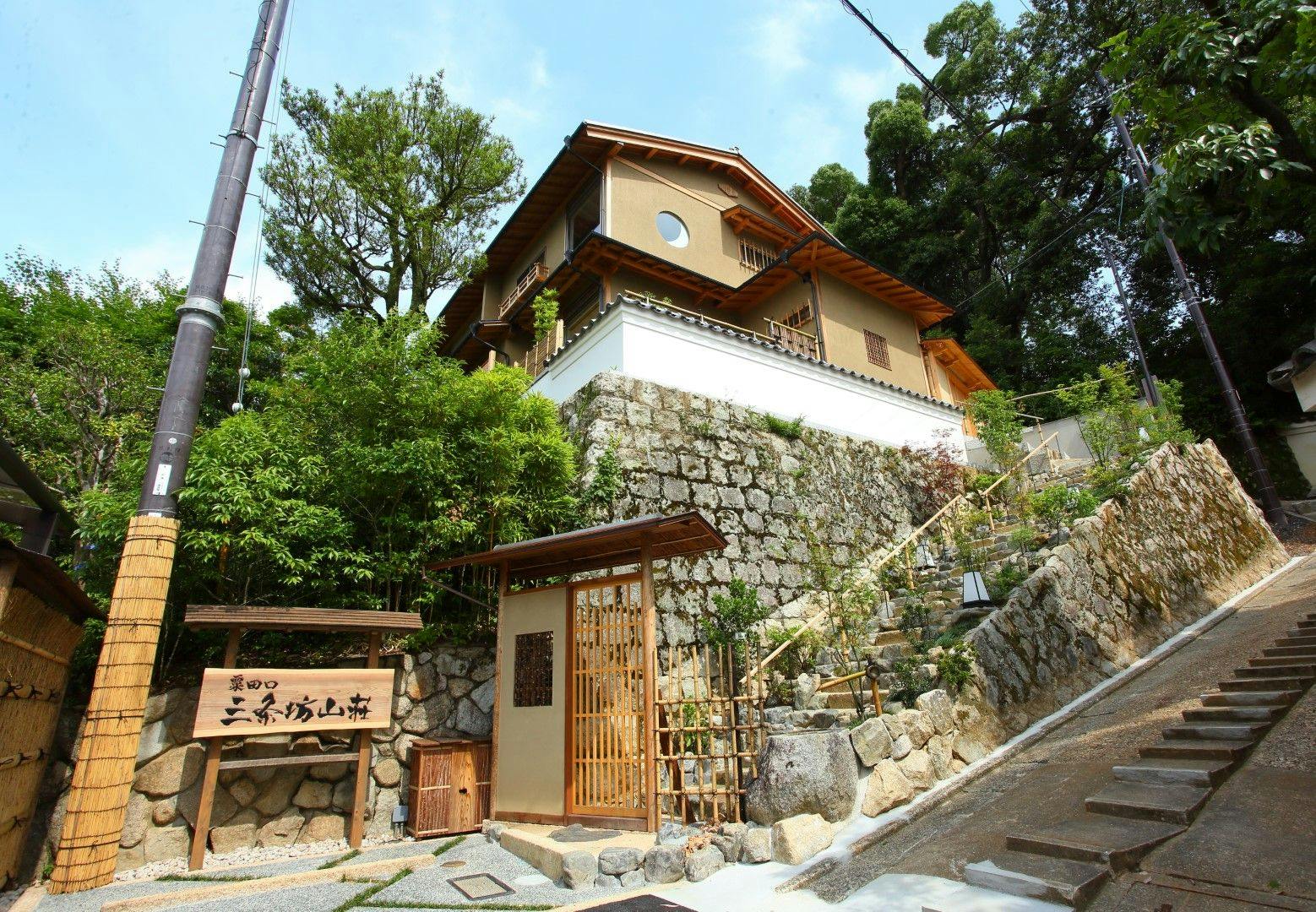 観光に便利な東山エリアに位置するラグジュアリーなホテル。地下鉄東西線「東山駅」または、「神宮道」バス停から三条通り沿いに東へ徒歩5分。閑静な住宅街の一角に粟田口三条坊山荘はあります。