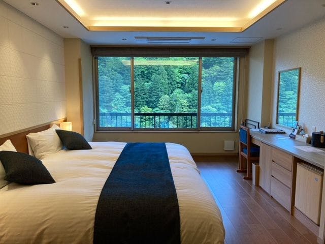 自然豊かな湯の山温泉に佇む湯宿。大浴場の内湯は24時間入浴可能、2つの貸切風呂は平日無料です。また地元の食材にこだわった季節の会席料理も人気。ペット預かり処や夏季の屋外プールなど設備も充実です。