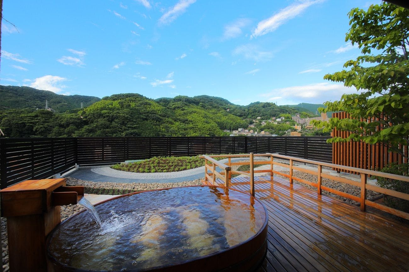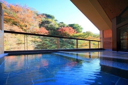 天然温泉は、箱根連山を望む眺望の良い貸切露天風呂や、大浴場、桧の露天風呂、岩造りの露天風呂でご満喫。温泉三昧の後は、お部屋または個室でゆっくりと季節の彩り会席をどうぞ。