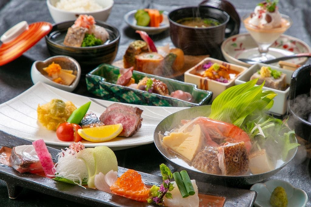 2021年3月1日リニューアルオープン。敷地面積1万坪の中にある名苑や2ヶ所から湧き出る名水は地元でも有名。地元の幸やこの名水を利用した創作和会席と絶景露天風呂が自慢のくつろぎ宿。