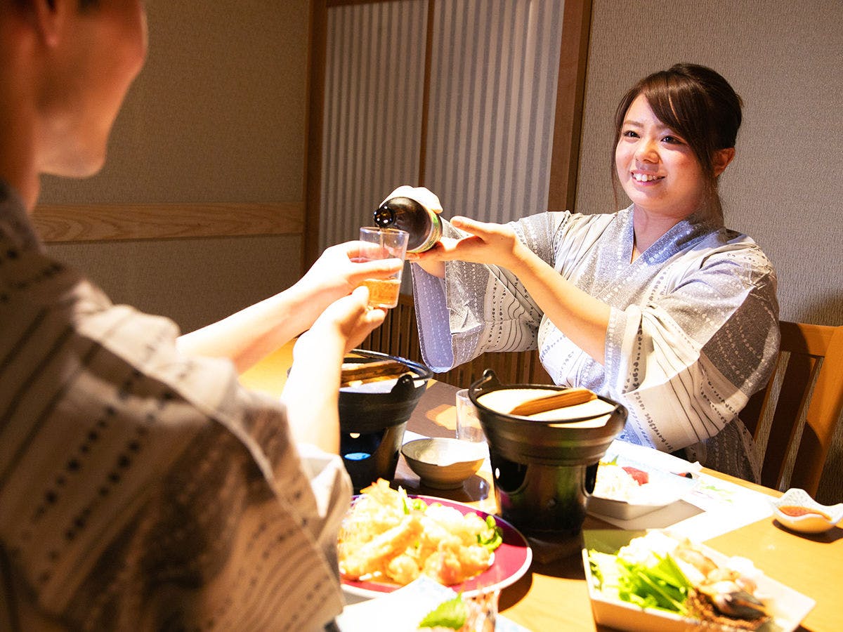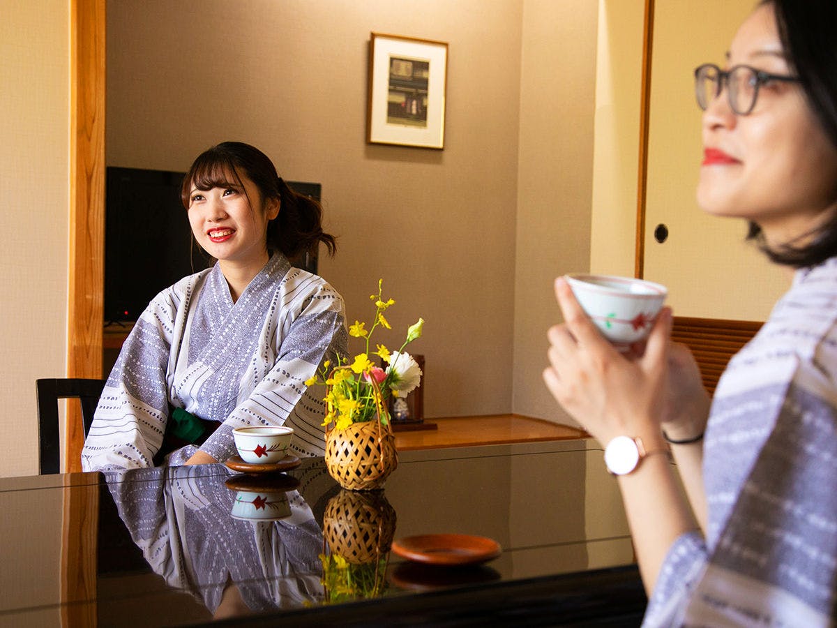全室離れ、お子様連れでも安心な温泉旅館。親しみやすく温かいおもてなしが好評です。茅葺屋根の客室が醸し出すレトロな懐かしさと相まって、まるで「おばあちゃん家」のように落ち着く空間です。