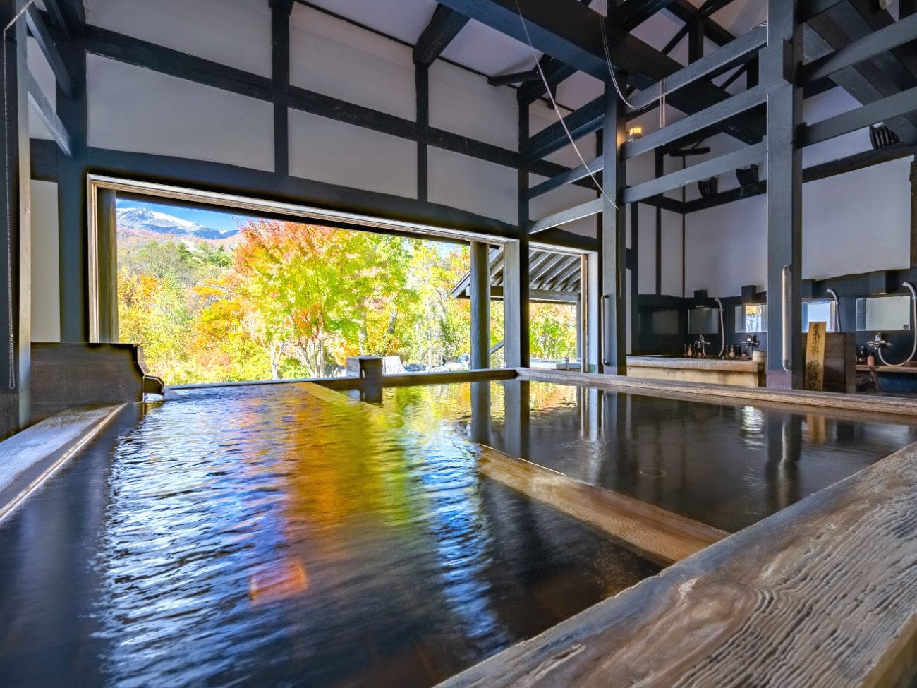 北アルプス白馬山麓、3万坪の敷地に建つ高原リゾート。白馬村最大規模の温泉棟「古民家の湯」は豊富な湯量の自家源泉をお楽しみいただけます。