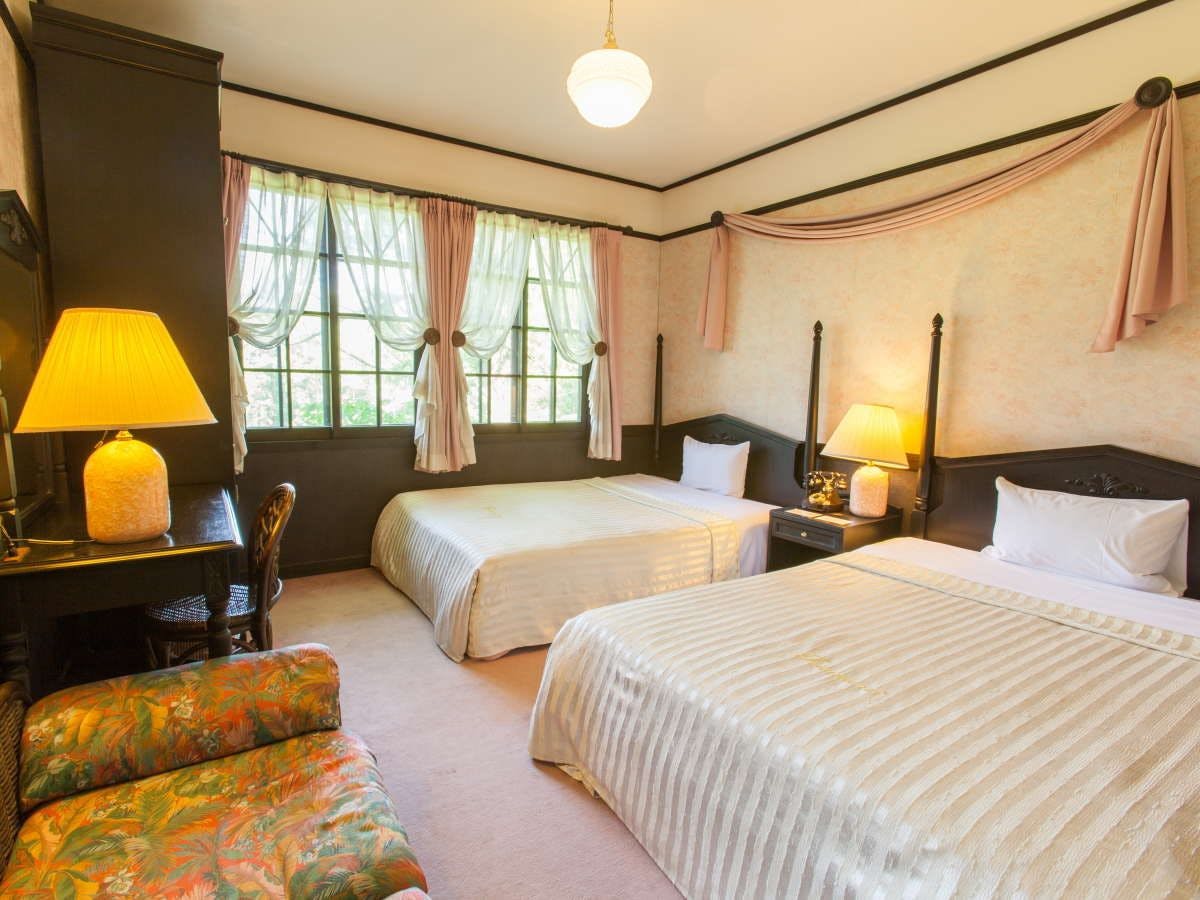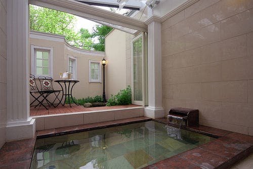 広大な森に囲まれたヨーロピアンタイプのホテル。優雅で気品に満ちた館内。全室趣の異なる客室。大きな窓の森のジャグジーバス。極上の癒しの空間を。
