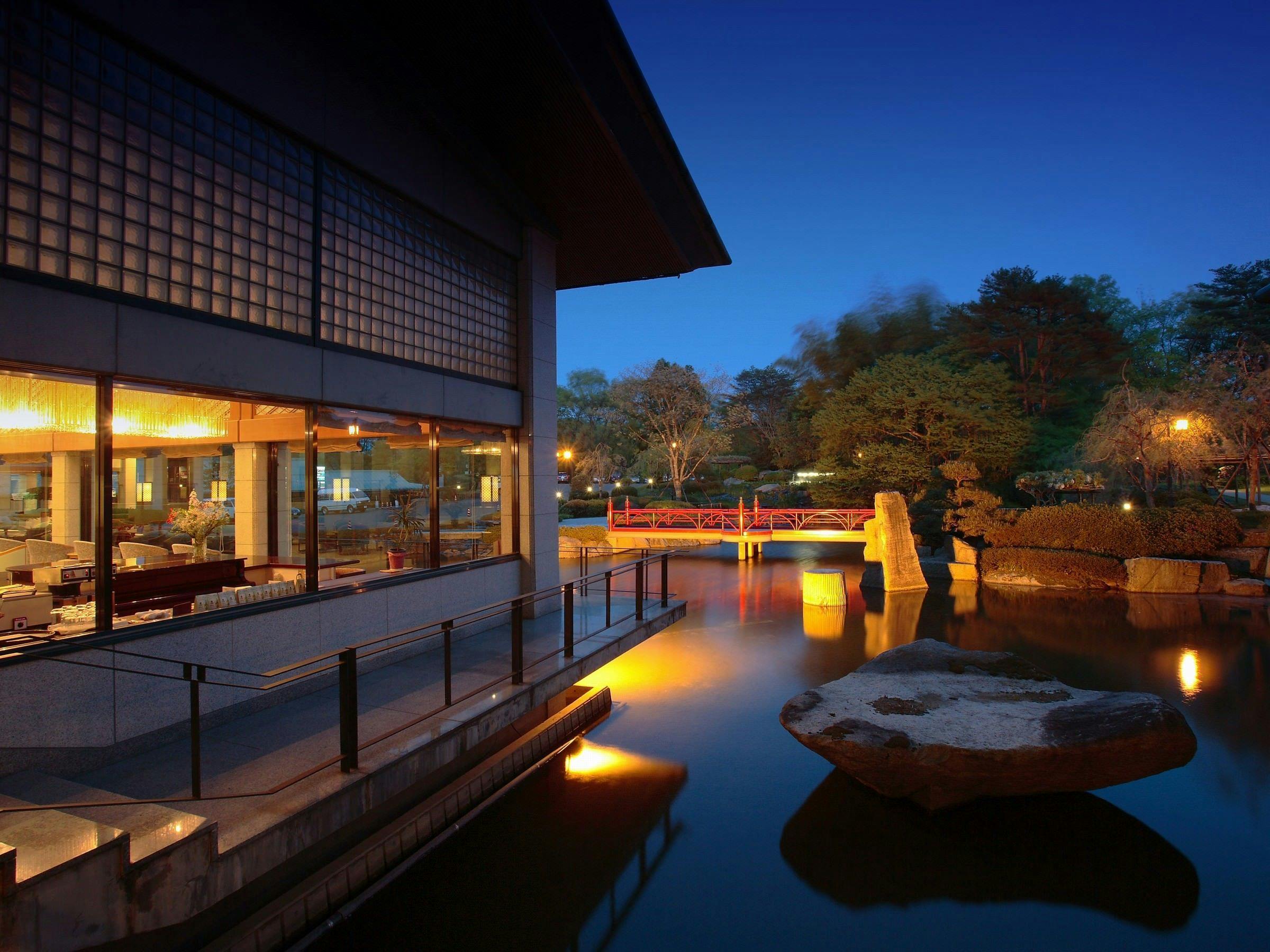 仙台駅からお車で約30分。秋保温泉の高台に佇む一軒宿。広大な日本庭園と自然と一体化した露天風呂が人気です。