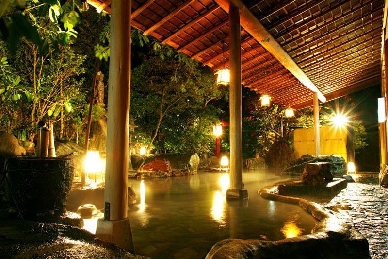 創業100年を迎える老舗宿。西伊豆随一の広さ、毎日207,000リットルの最大の湯量を誇る大野天風呂を始め、洞窟風呂、天空貸切露天風呂など、湯巡りも楽しい温泉宿。