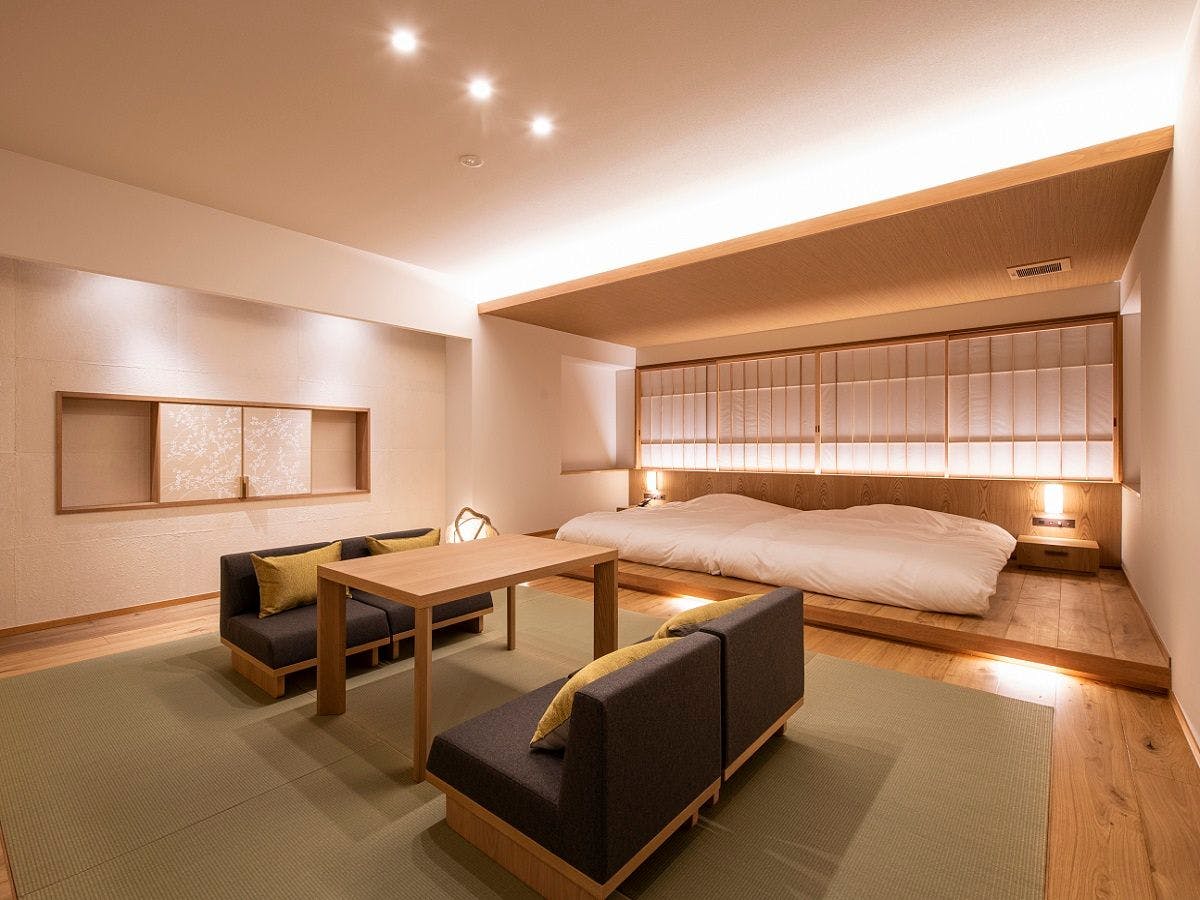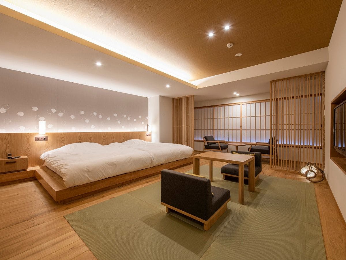 洋の趣きと和のおもてなしでお迎えいたします。湯沢の四季をイメージした「藤」「蓮」「萩」「梅」の4つのお部屋で、源泉掛け流しの露天風呂の魅力と、上質なリラクゼーション空間をご堪能ください。