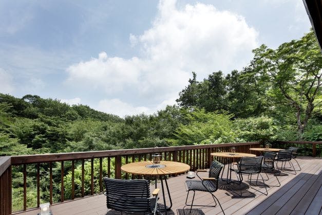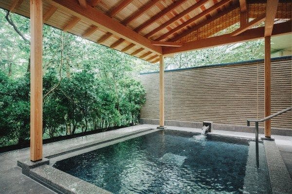 森の中に佇む離れ宿。源泉かけ流し、旬の食材を活かした本格フレンチをご堪能ください。全客室には檜風呂(一部陶器風呂・露天風呂)とバルコニーがあり、プライベートな時間をお過ごしください。