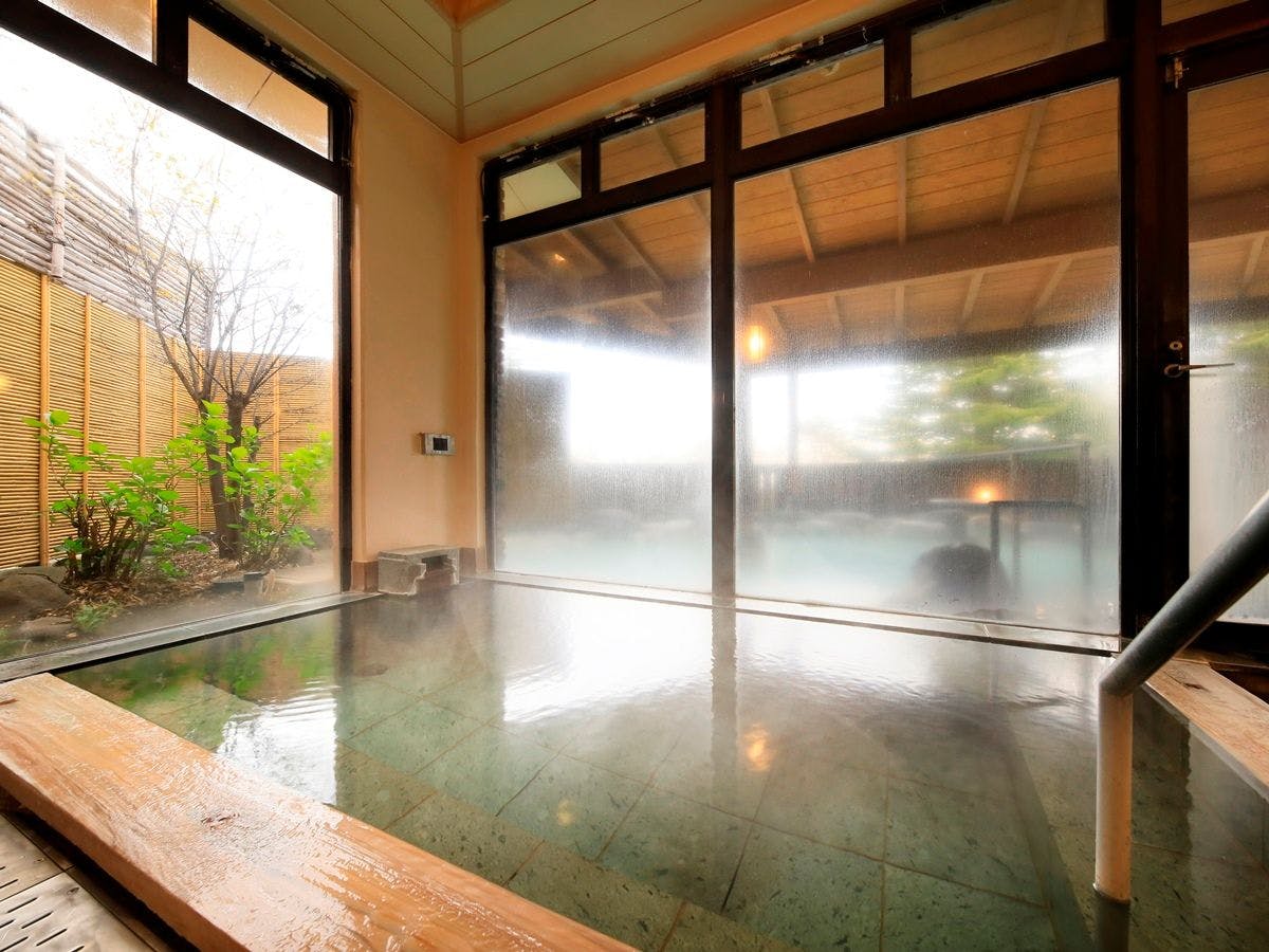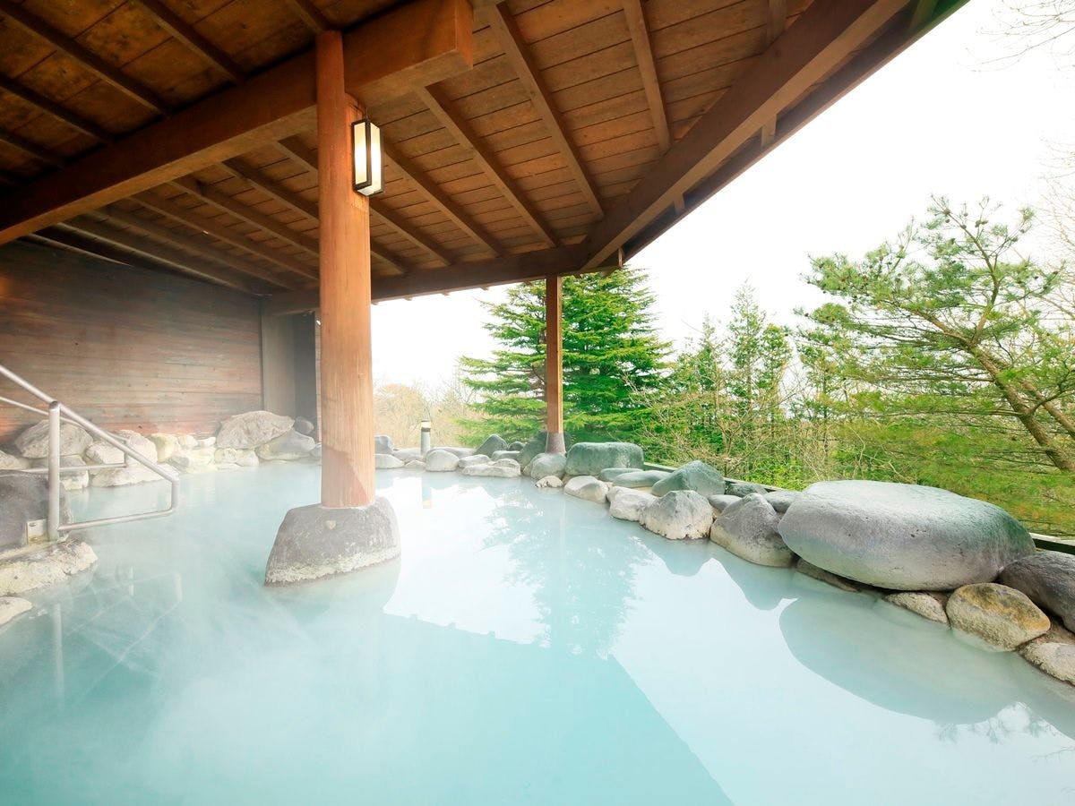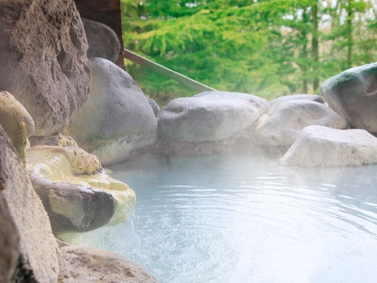源泉「鹿の湯」を引湯している乳白色の温泉露天風呂でゆったりお寛ぎ下さい。