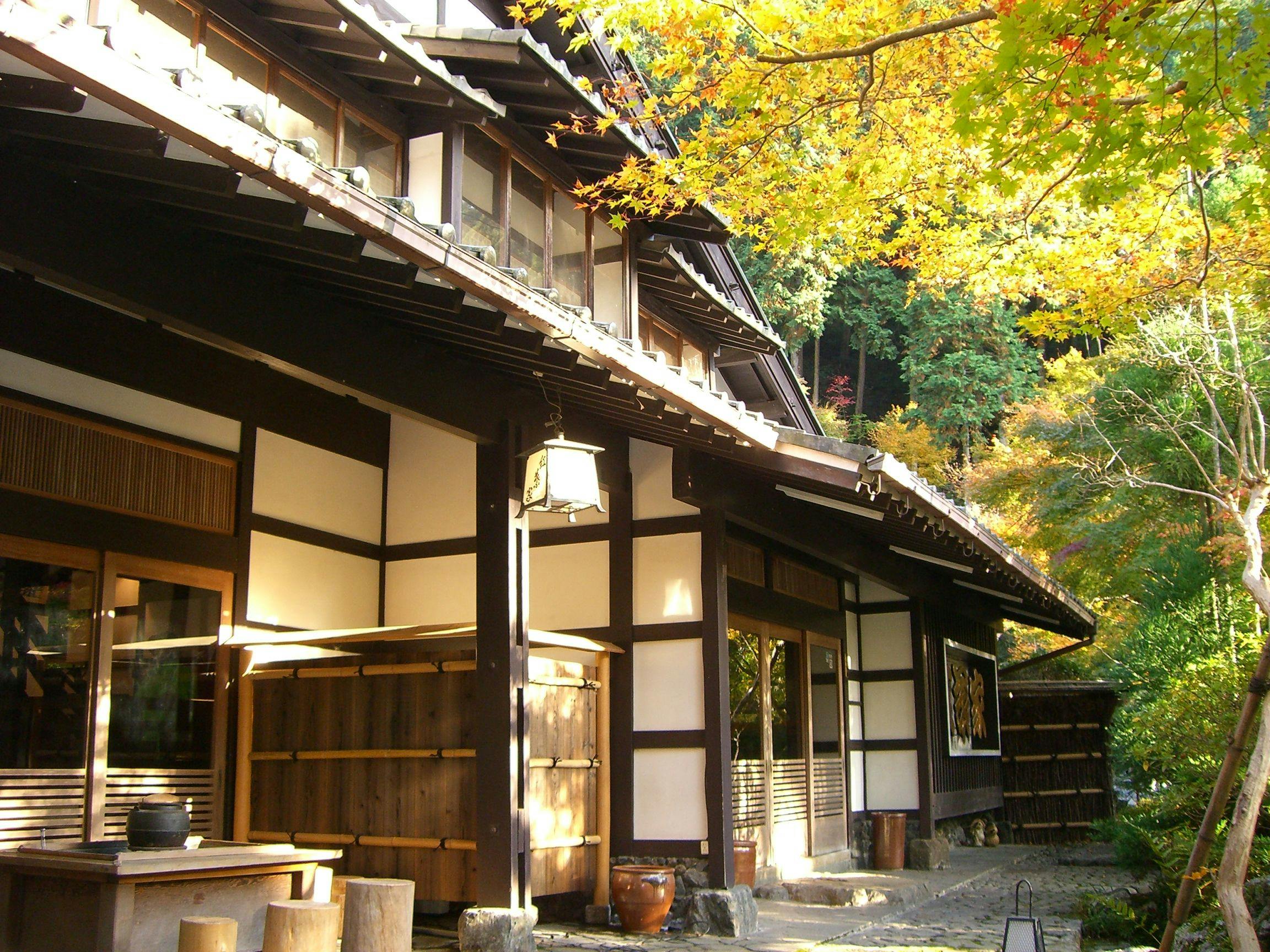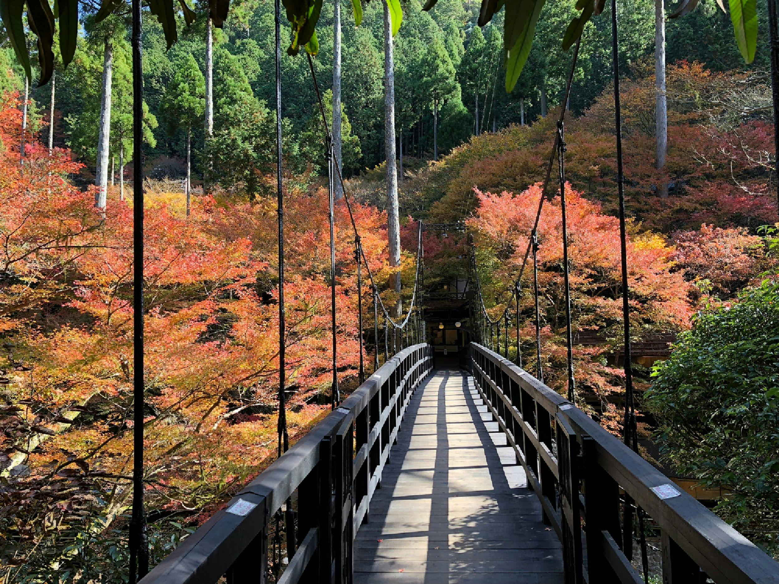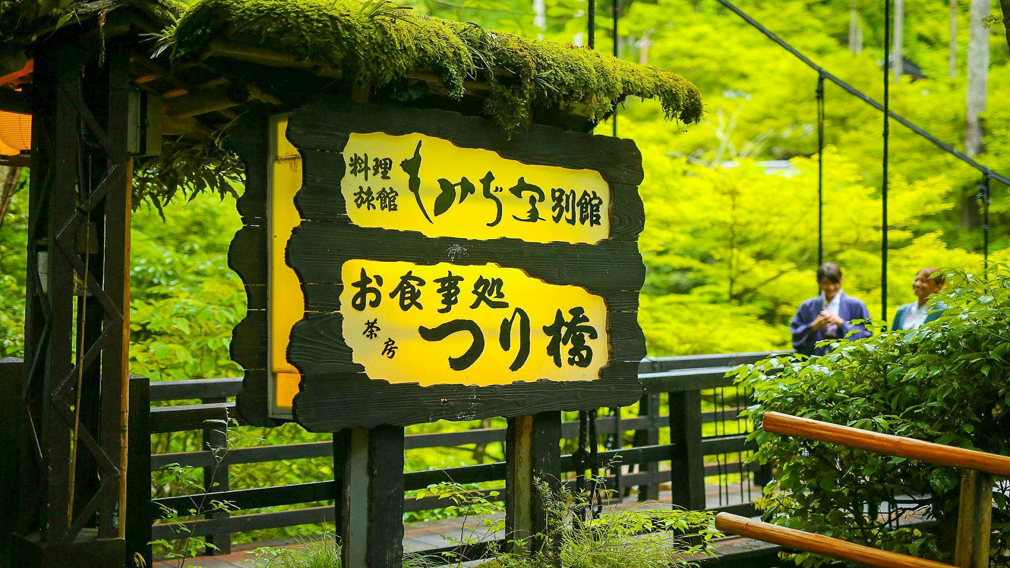 京都駅より車でわずか30分、高雄は京の奥座敷です。専用のつり橋を渡ると、そこは閑静な民芸調の宿。夏は納涼川床で蛍鑑賞と舞妓の特別企画。