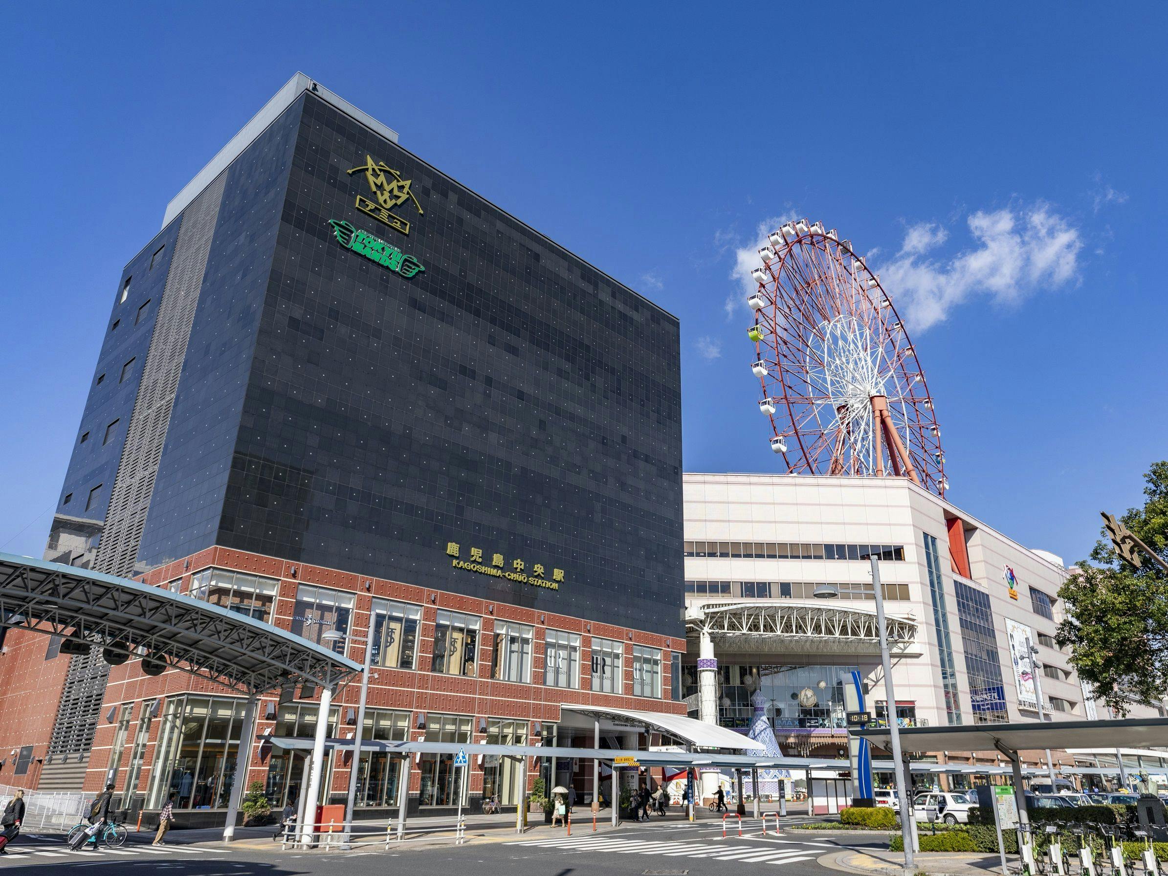 九州新幹線のJR鹿児島中央駅正面に位置し、当ビルの1階には中長距離高速バス発着所も併設され、鹿児島市内の交通の中心地です。