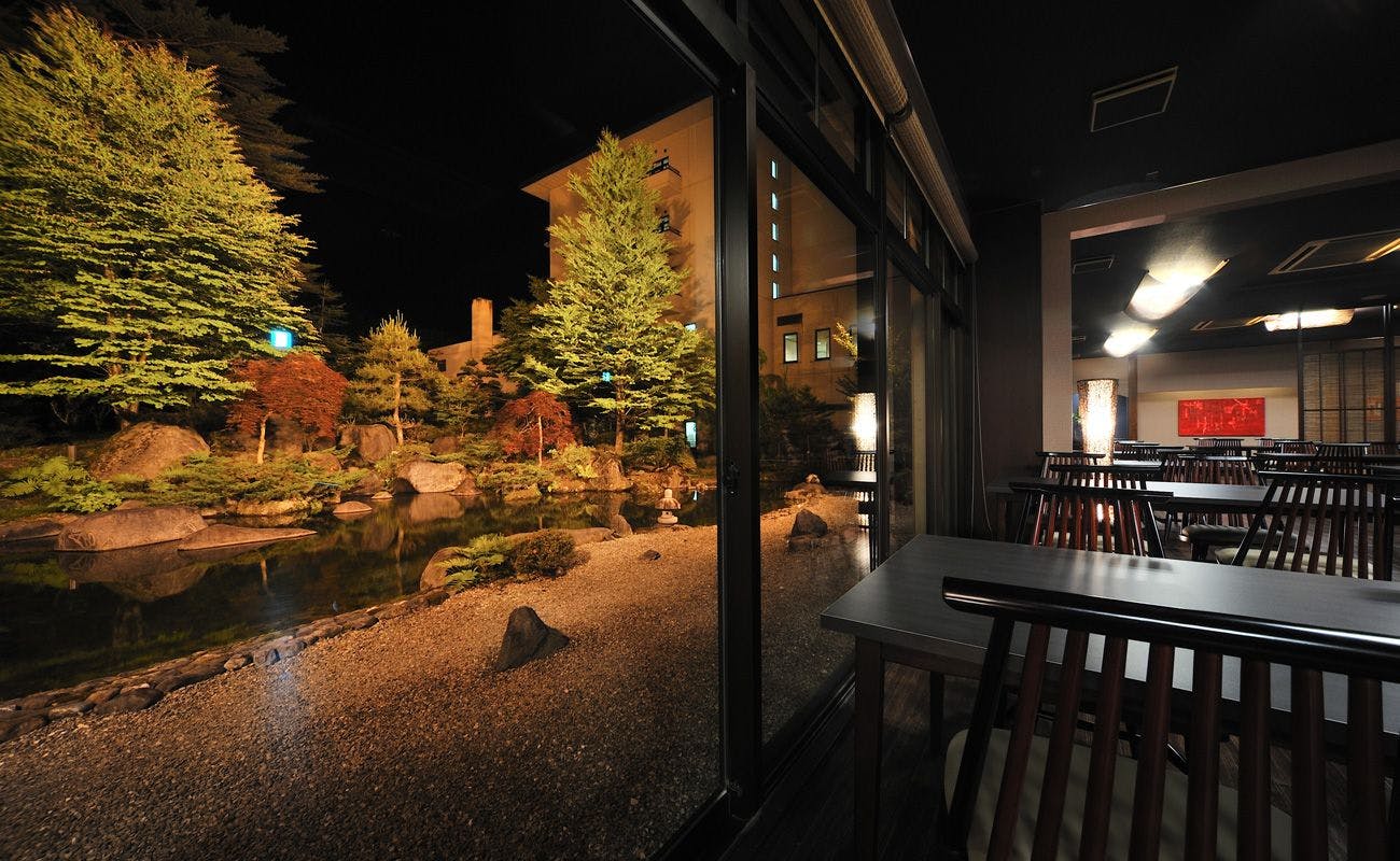 静かな自然に囲まれた美食自慢のホテル・レストラン。1日5組限定「洋風懐石」は世界三大珍味の他、地元の食材を取り入れたメニューが大好評。洋風露天風呂とジャグジーは24時間利用可能です。