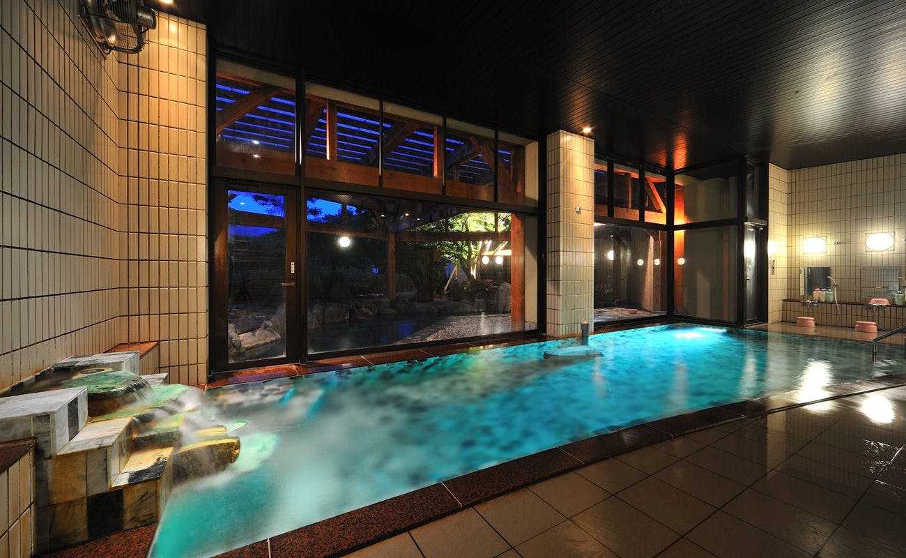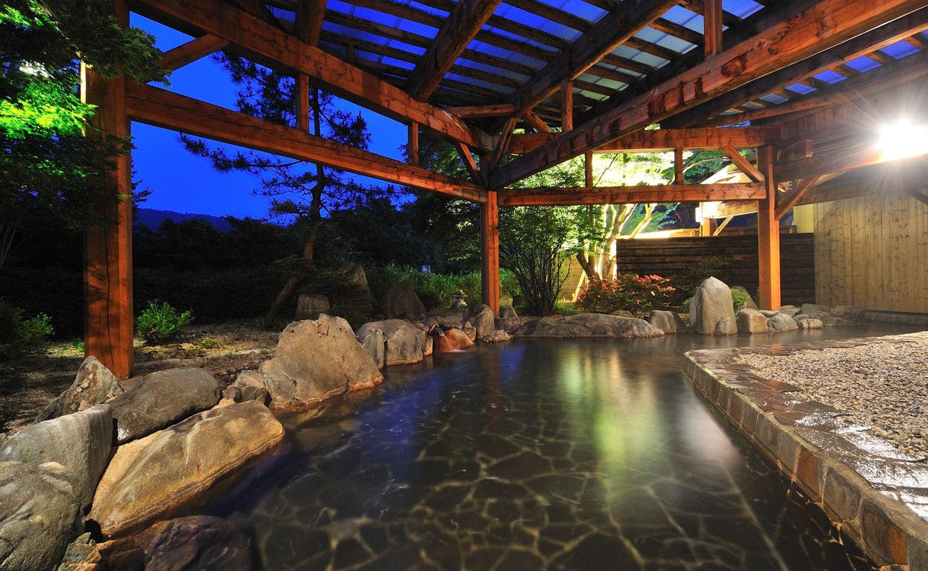 ゆったりと足を伸ばせる大浴場、広く開放的な露天風呂。浴槽の小脇にある庭園からは季節の花とみどり、また雄大な山々から吹く風の香りが癒してくれます。
