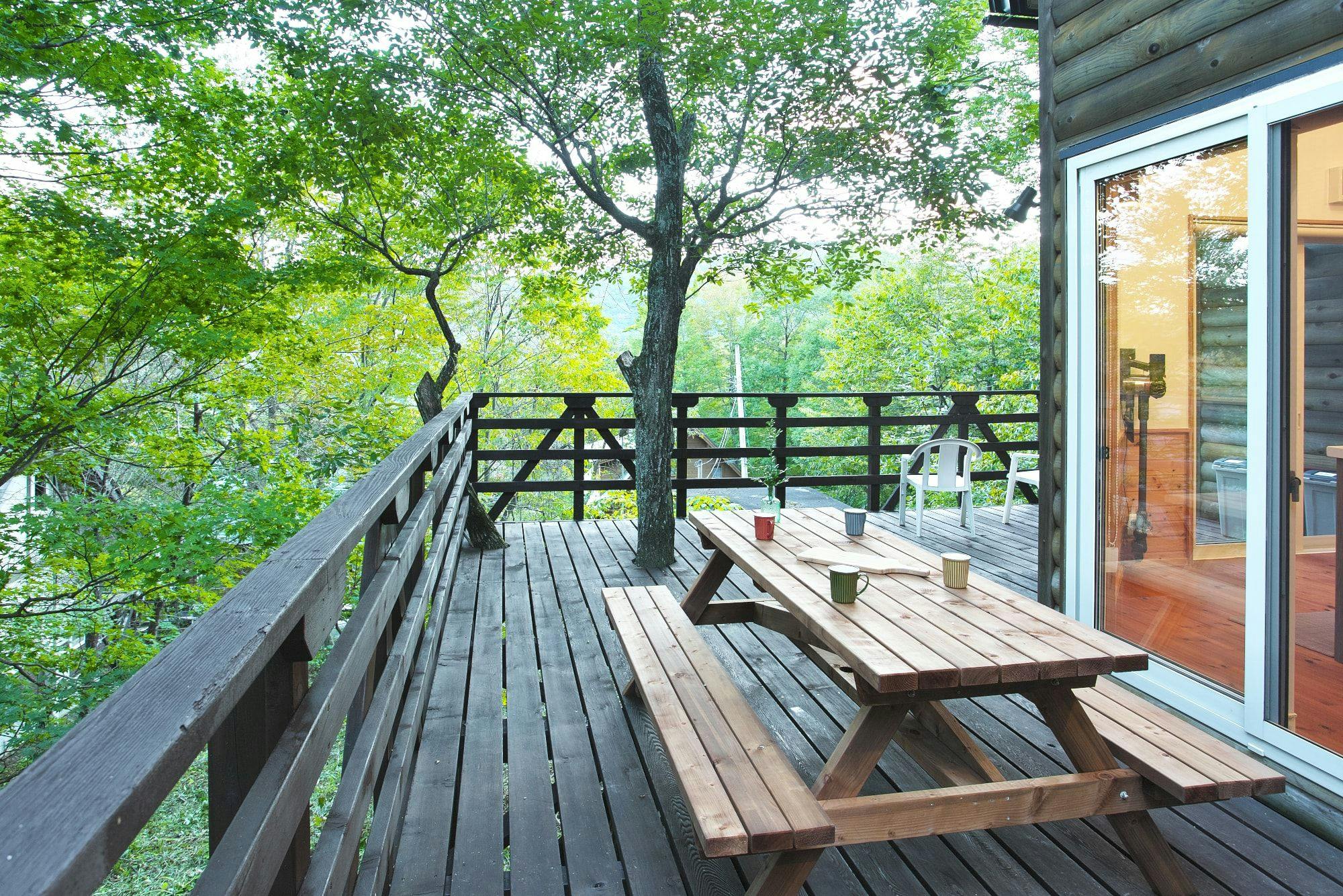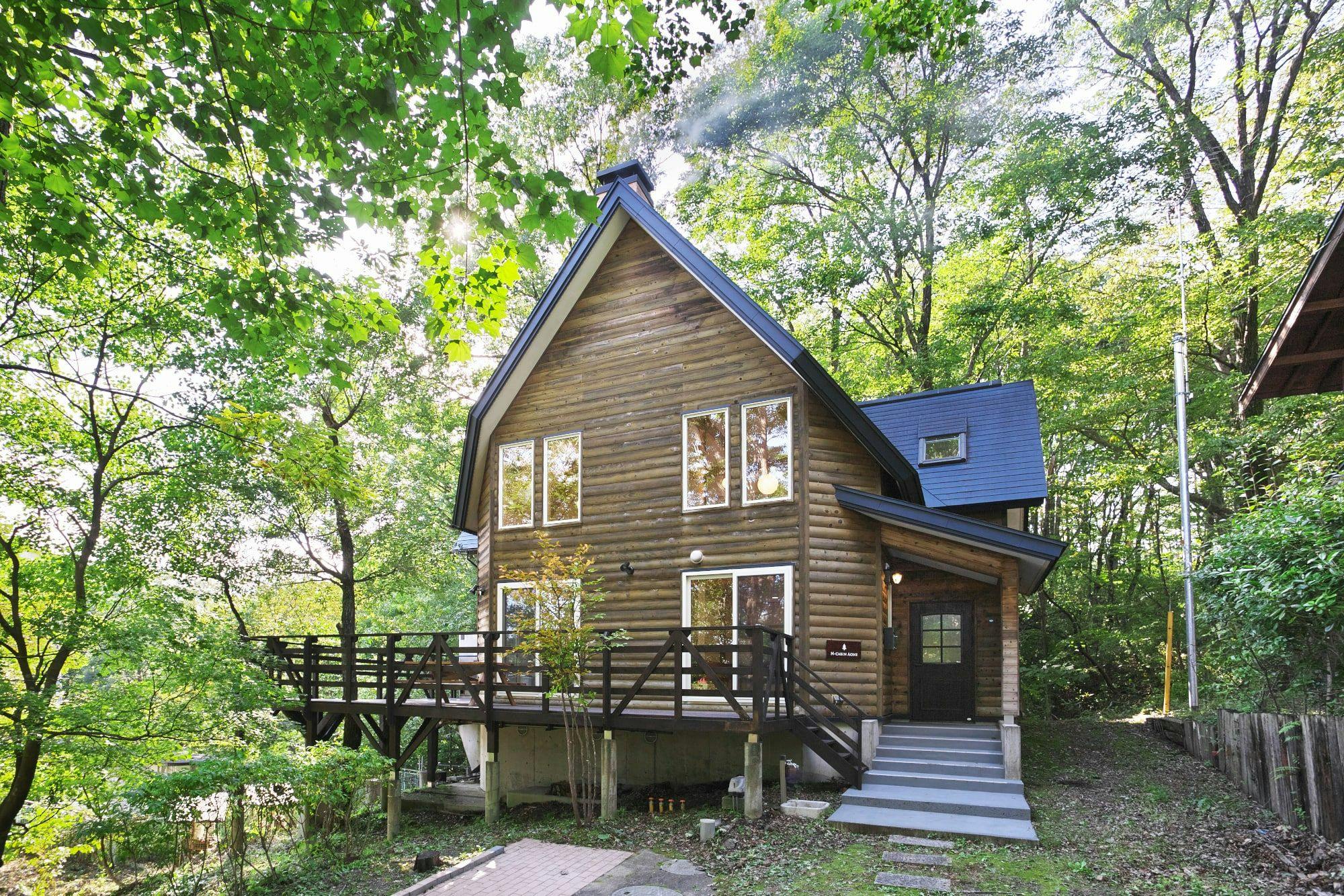 静かな別荘地の大きなキャビン。広いアウトドアデッキと充実したアイランドキッチン、そして天然温泉のフォレストビューバスが自慢の一棟です。自分の別荘のようにおくつろぎいただけます。