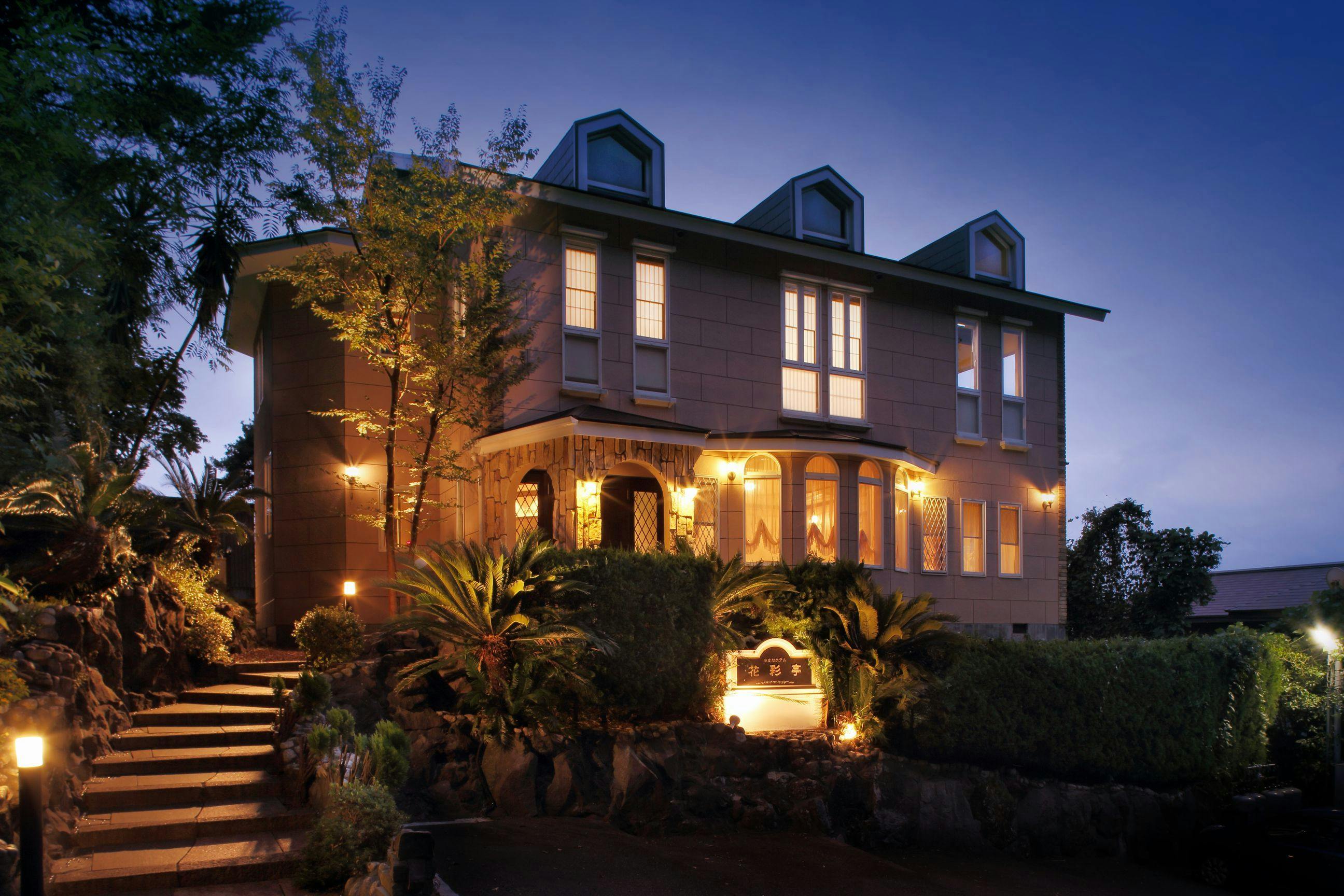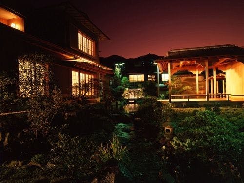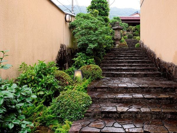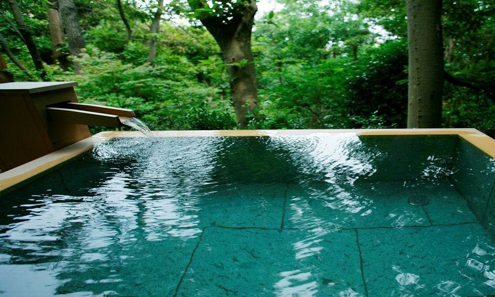 全ての客室に備え付けられた露天風呂からは、相模湾と伊豆諸島の絶景をお楽しみいただけます。時を経て完成された日本庭園に囲まれた数奇屋造りの純和風建築で、愛犬と一緒に客室でおくつろぎいただけます。