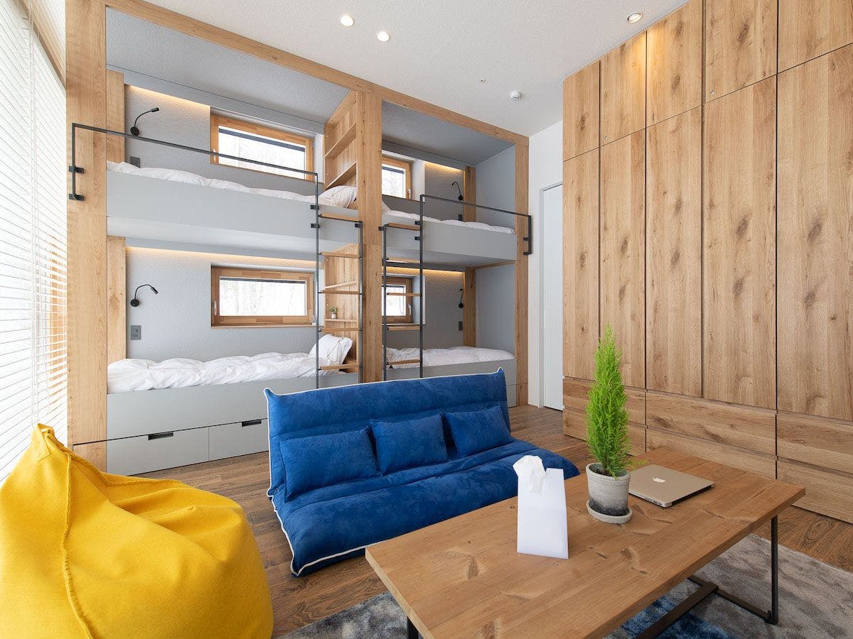 スキーリフトまで徒歩10分圏内にある、アクセス抜群のアパートメントタイプのコンドミニアムです。冬はもちろん、夏もエアコン付きで快適にお過ごしいただけます。ワーケーションなどの長期滞在にも。