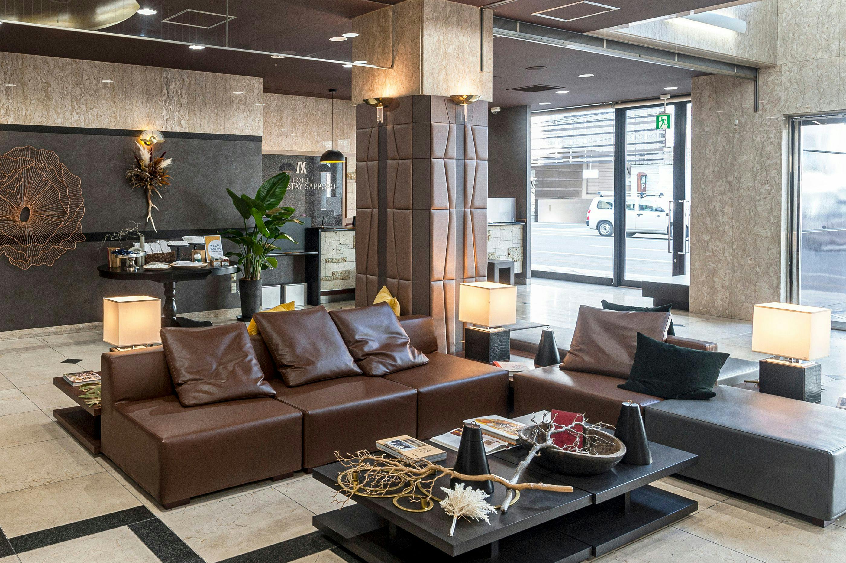地下鉄大通駅から徒歩約2分、駐車場も完備。市内中心部にありながら、創成川に近く静かな環境が魅力です。天井が高くシックな客室は全室禁煙、ひっそりと佇む都会の隠れ家のようなホテルです。