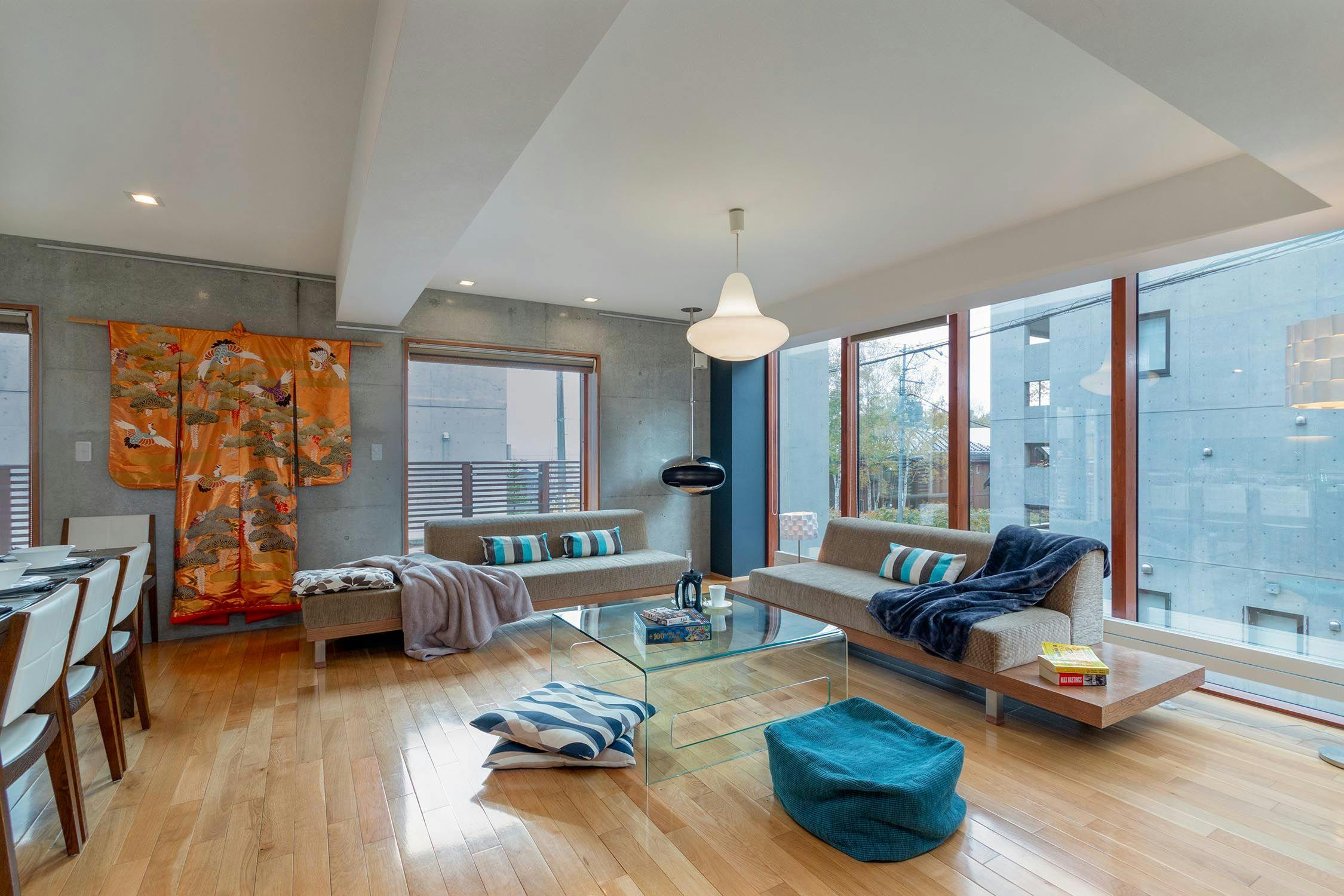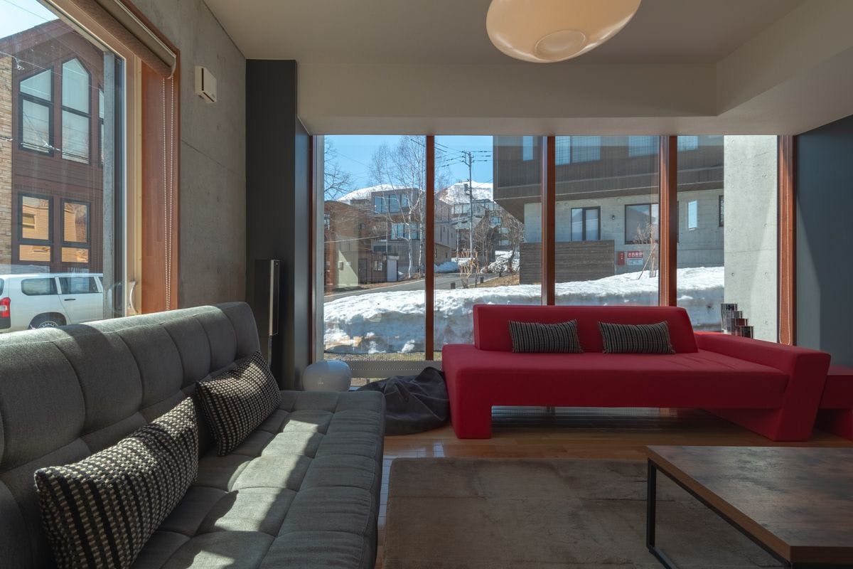 ローワーヒラフに建つ便利な立地の高級別荘です。1棟に3つの別荘が並んでいます。それぞれにゆったりとした広いリビングスペースがあり、ご家族やグループでの滞在にお勧めです。