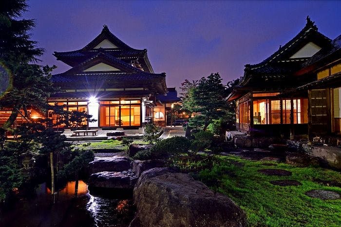 会津東山温泉の本座敷。宮大工が造った趣ある屋敷は昭和木造建築の会津三大御殿と言われる。料亭鶴我でのお食事は地産地消。会津料理が進化した「会津武家会席」。宿と食にも拘りつくした贅沢な時を堪能下さいませ。