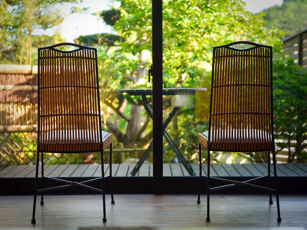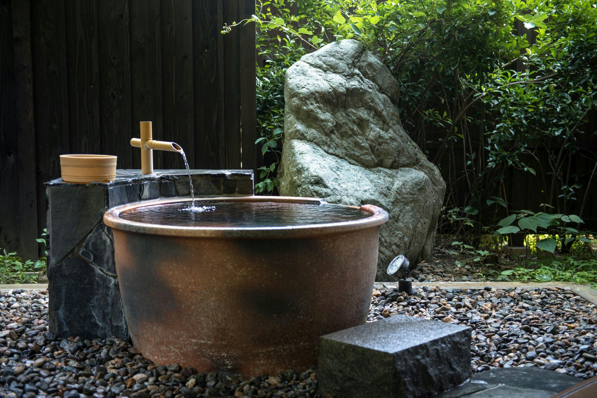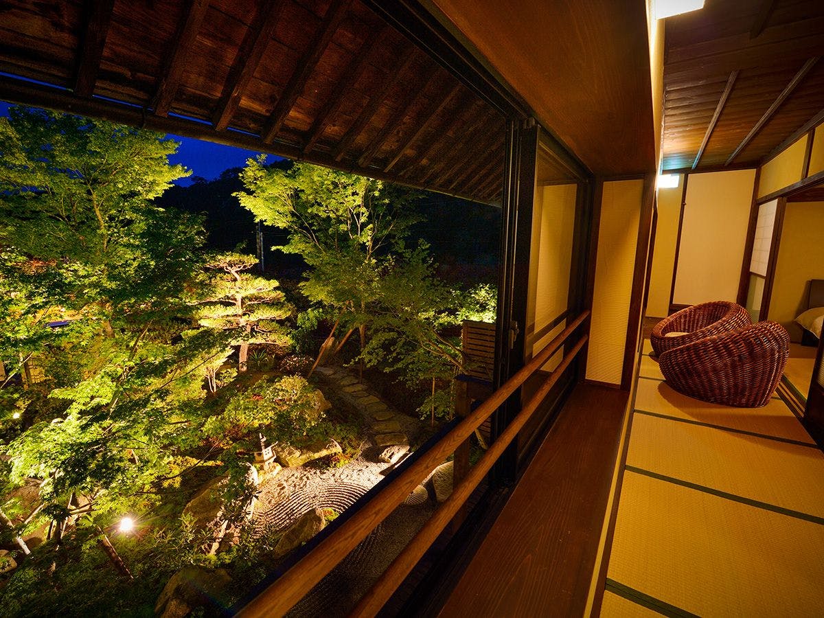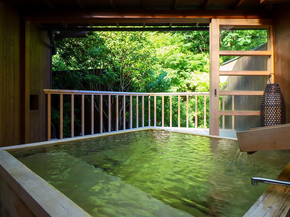 源泉掛け流しの部屋専用貸切風呂が楽しめる1日4組様だけの贅沢な空間。窓から望む日本庭園が醸す和の趣と静かにゆったり流れる時間で日常を忘れるひと時を。