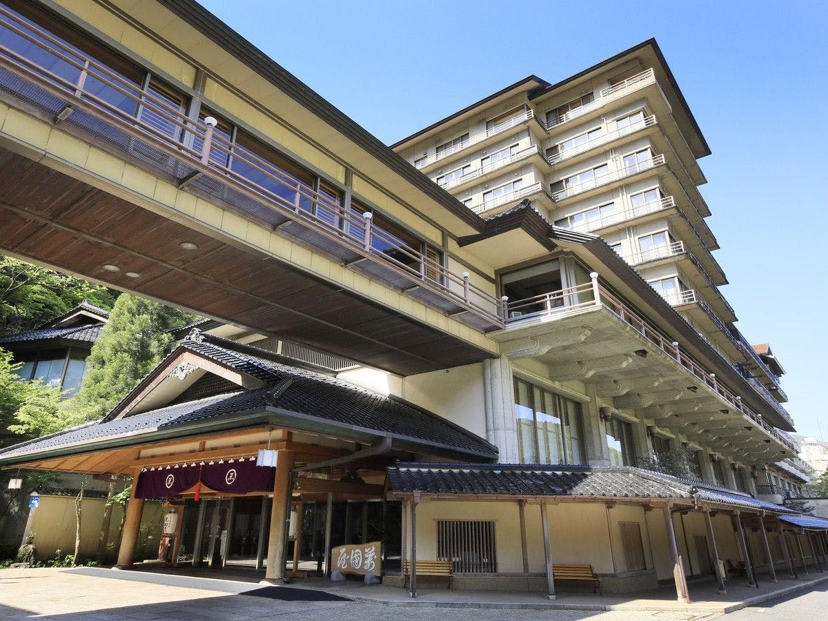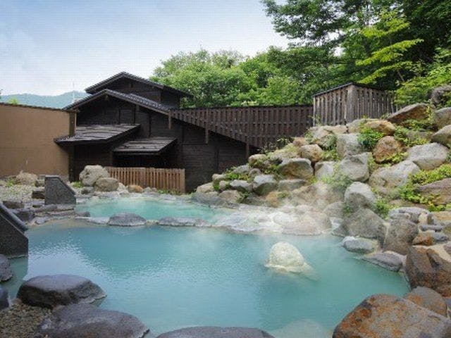 蔵王連峰の麓に佇むホテル。歩いて108歩の「離れ湯 百八歩」では雄大な山並みを望みながら乳白色の天然温泉を楽しめます。山形牛や山形の旬の食材を使用した味会席膳など、拘りのお料理と共にご堪能ください。