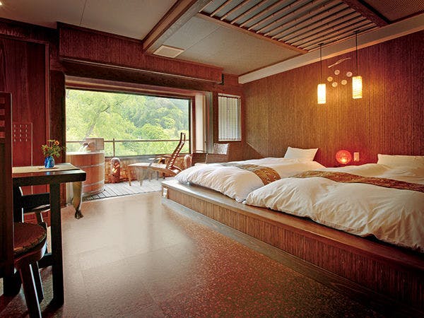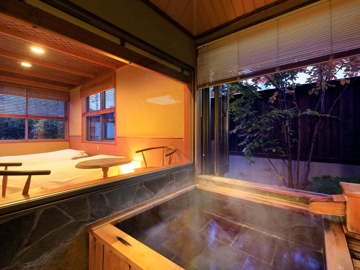 「和みの私邸」専用露天風呂を有する7室の客室。やさしい想いが集いこころ和む場所。どこか懐かしさも感じる温もりの空間。もう一つの我が家で過ごすように、気兼ねなく、想いが叶うご滞在が此処にございます。