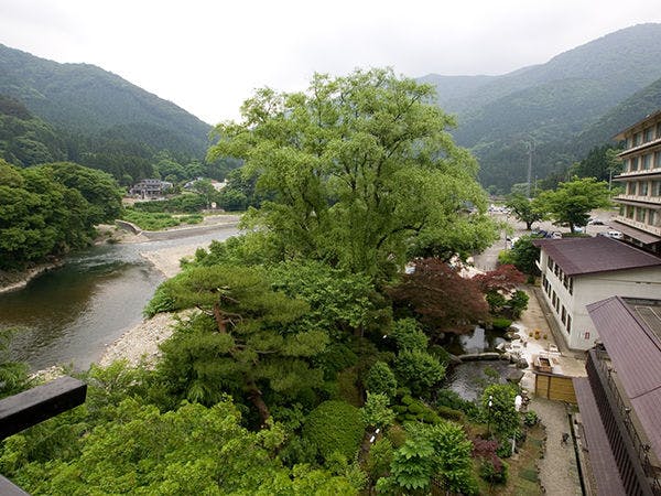 清流温海川を中心に周囲を山々に囲まれた自然の中でゆったりと流れる時間をのんびりとお過ごしください。