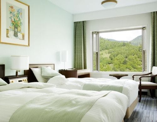 標高1200m。山の麓に広がる自然豊かな「ベルツの森」に囲まれたリゾートホテルで、ゆったり快適なご滞在を。